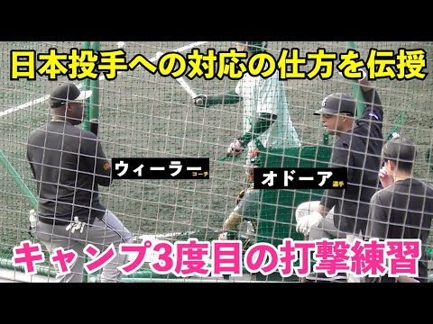巨人オドーア選手、いよいよ明日から実践へ!キャンプ3度目の打撃練習ではウィーラーコーチに日本の投手のタイミングの取り方を確認する場面も!読売ジャイアンツ 春季キャンプ