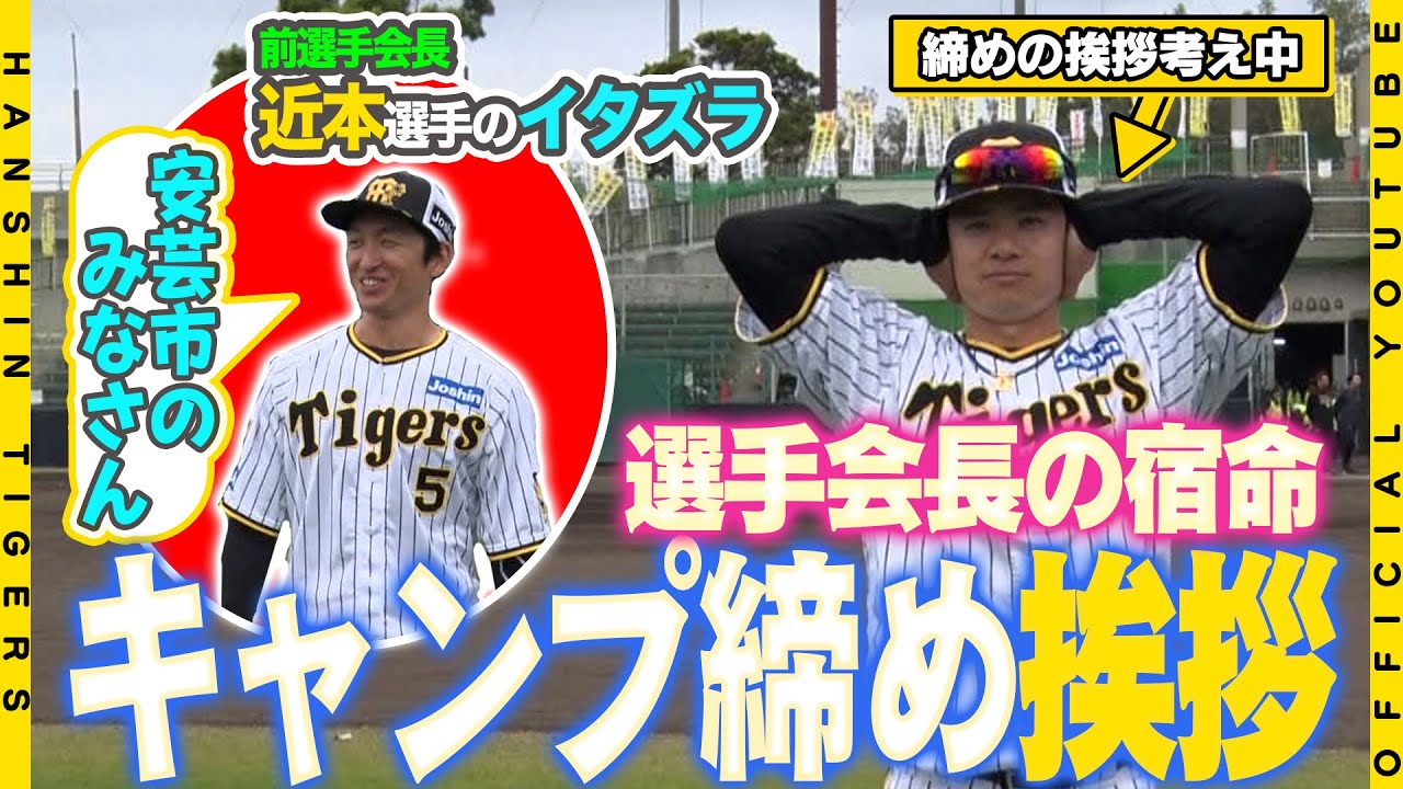 [拍手] まず初めに田村の皆さん阪神さん浦さん 球団関係者の皆さん約1か月間ありがとう ございまし た今年はたくさんのタイガースファンの方 に足を運んで応援いただき またチャンピを掲げていただき充実した キャンプを送ることができました ありがとうござい ます今年のチームの目標はただ1つ連覇 です連覇を達成しファンの皆さんと共に 喜びを分かち合えるようチーム1眼となっ て頑張っていき ます今年も昨年以上の温かいご援よろしく お願いします それでは1じめで閉めたいと思いますお手 を拝借 よありがとうございまし [拍手] たはい MVPうはいはい [音楽] はい [音楽] はい [音楽] さ はいはいちゃんあさんあさんあ [音楽] [音楽] あ ござますご ご り ごねまあのキャンプお疲れ様でした最後の 最後まで抜かずにね無駄怪がけないように しっかりめていきましょう いよしゃ頑張って き て昨日補給ミスが目立ったからな