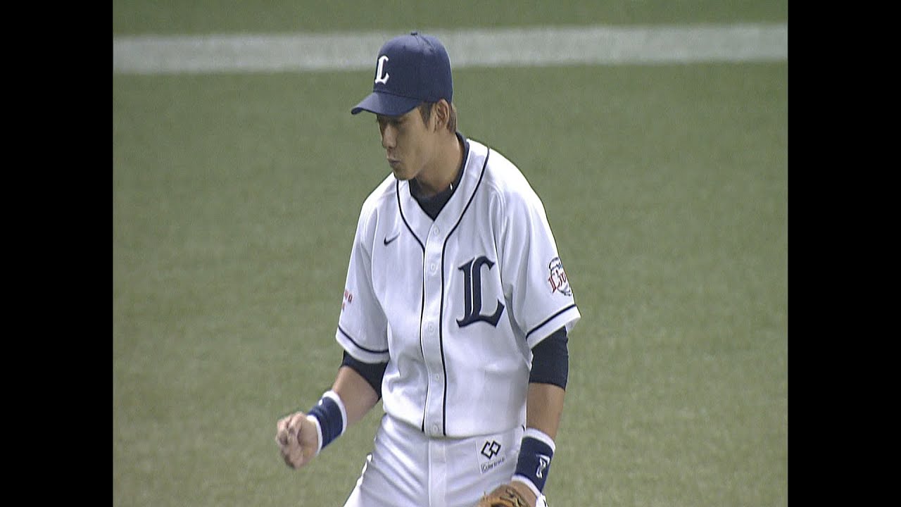 お馴染みのセンターではなく、レフトを守る栗山巧。陽岱鋼の後方への大飛球も、しっかりと捕球。ポジションに関わらず落ち着いた守りを見せた。(2011年9月20日 埼玉西武ライオンズ対北海道日本ハムファイターズ)
