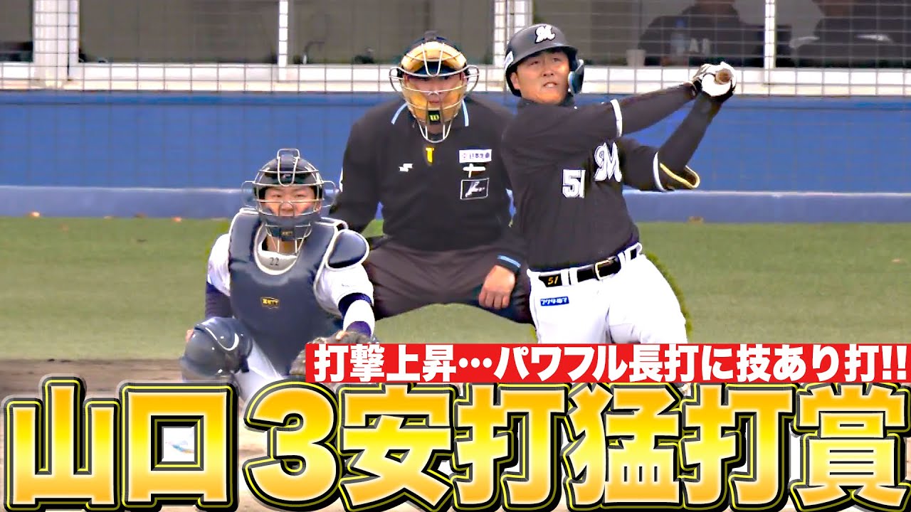 4番でスタメン出場の千葉ロッテ・山口航輝は3安打猛打賞と結果を残す活躍をみせた!!! レフトオーバーのフェンス直撃打に技アリの1打。左右に打ち分け打撃は上昇ムード。不動のレギュラー獲得へまずは打撃で結果を残し続けたい!!!