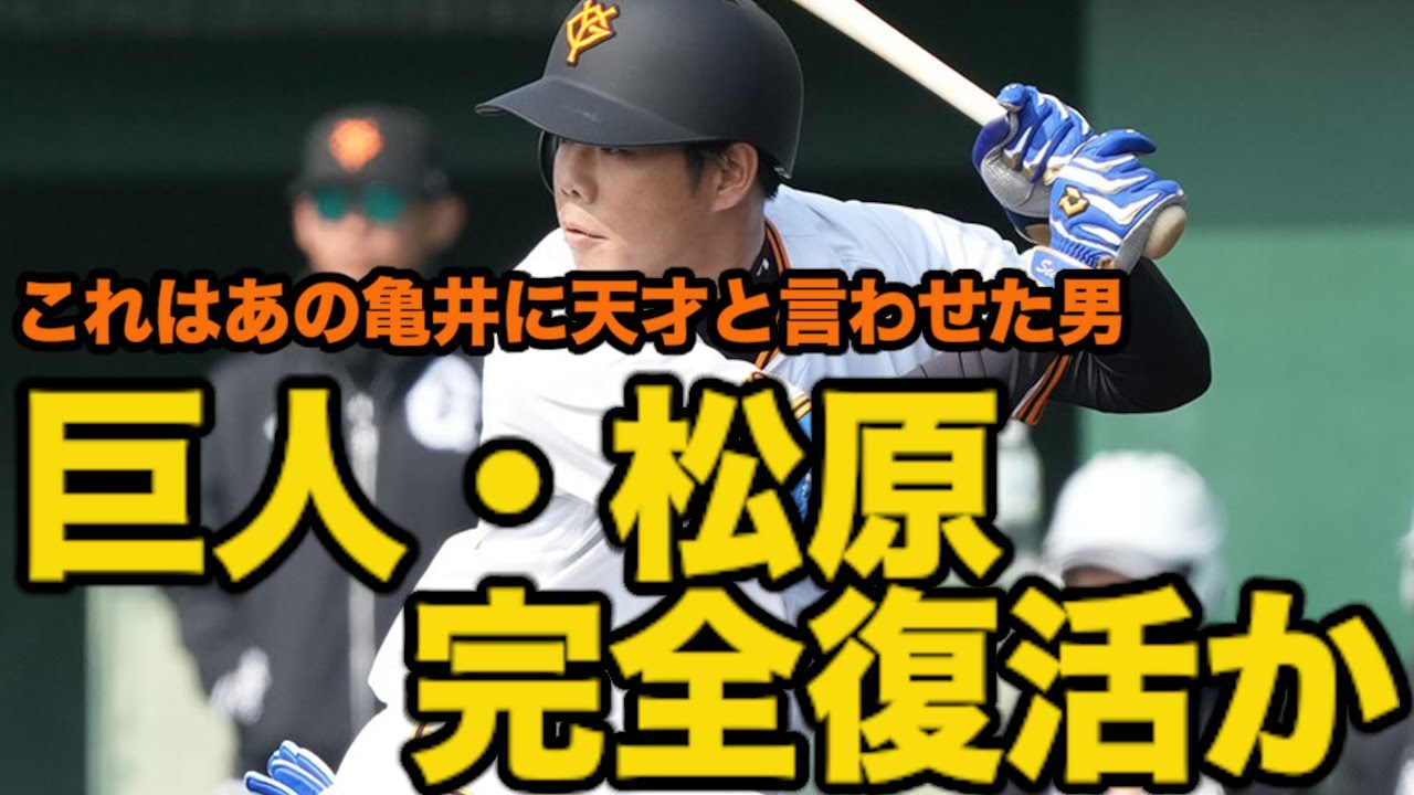 [音楽] 巨人松原を蘇らせた安倍監督のシトゴを ずっと打て作一軍無安だからの復活をきす 松原せや足はオープン戦3試合連続案だと 好調をキープしている安倍新之助監督から 伝授された逆方向打法で結果を残し中堅で のレギュラーダッシュへもアピールした 安倍の教えがきた今春のキャンプが始まっ てすぐここ2年低迷していた打撃について 助言されたショート頃ずっとうてと言って もらったんです鍵は逆方向への打撃の徹底 だった21年は育成出身で球団発の規定 打席に到達し135試合で打率に割7部4 人12本塁だと大ブレイクしかし皮肉にも 結果が出たことで打撃が崩れ始め去年は 強引に行ったりぶ分振り回していたと作は 21試合出場で無安打に終わった引っ張り の意識が強くなりすぎ外角攻めに対応でき なくなっていたことに気づけた指揮官の 教えを胸に刻みフリー打撃では68 スイング中60本を逆方向に打ち返す日も あったほどさらにコンオフは80kmから ブレイク当時の77kmまで減量バットも 昨年より50g軽くした生き残りをかけた 行動神を結びつつ ある復活か待ってたぞ開幕した目はある宛 に行って三振したり強引に振り回して三振 してた去年までとは別人あったね元々この くらいはできる選手内よ去年までが異常 だっただけやこれはあの仮面に天才と言わ せた男仮名の背番号級を取り戻そう安倍と 相性良さそうやねこれを去年は誰も言わ なかったんかどんな指導してたんやあとは これを継続できるからね松原は総塁肩守備 はいいから打撃が良くなれば全然 レギュラーになれるぞ今後はインコースを 攻められるだろうからその時にどう対応 するかだなまた結果出るようになった時に 元に戻らんことやね