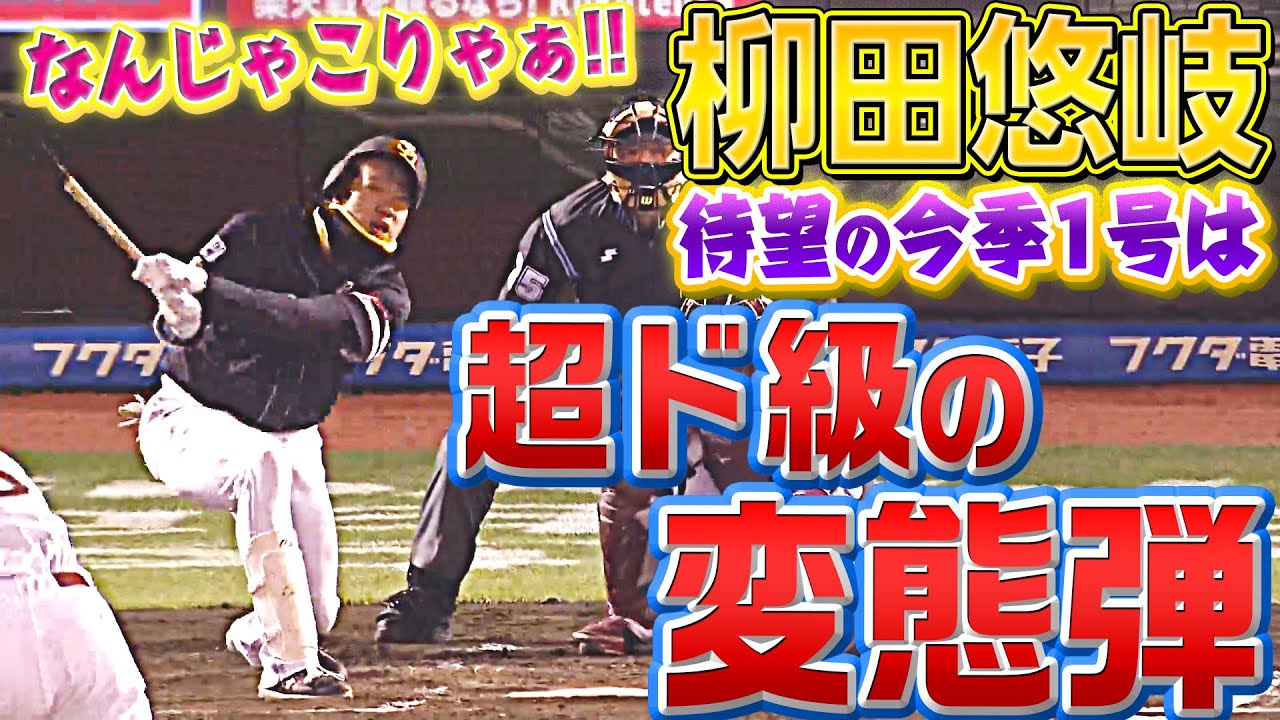 そろそろ出るのか?と思われていた福岡ソフトバンク・柳田悠岐の第1号。待望の一発が飛び出したが、超ド級の逆方向変態弾だとは思いもしなかった…。ギータらしさ溢れる一発、何度もどうぞ!!