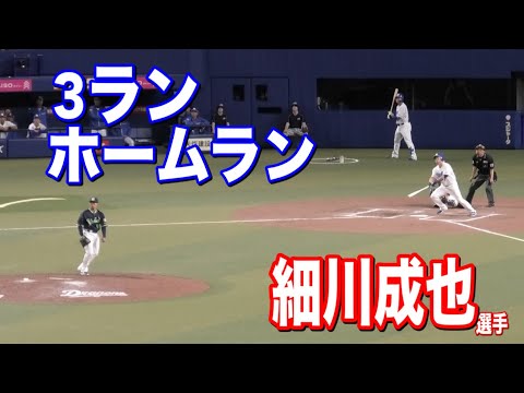 ※細川成也選手のホームラン打球追えてないです