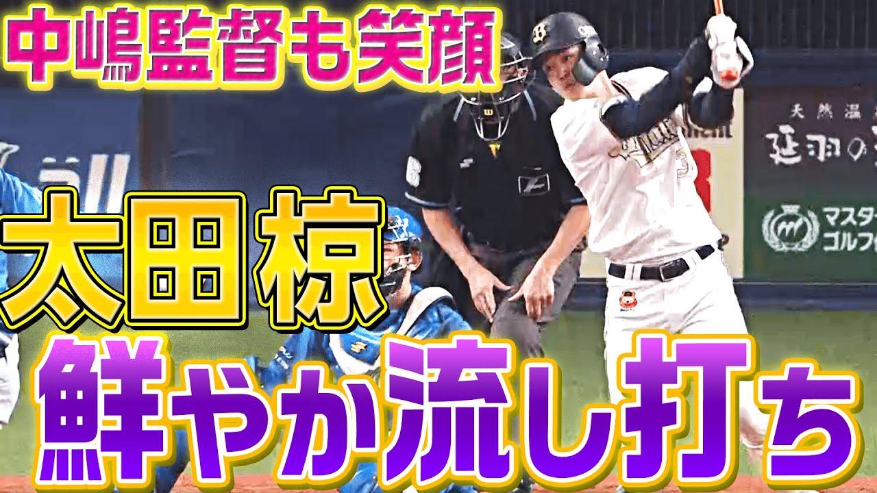 先制点を奪った後、なおも走者二、三塁のチャンスでオリックス・太田椋が決めた!逆方向へ運んだ鮮やかな一打に中嶋監督も笑顔に!!