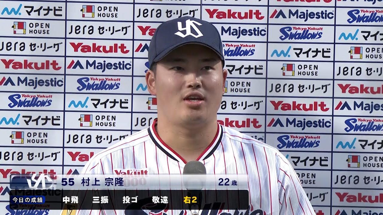 2日(土)、神宮球場での横浜DeNAベイスターズ戦。試合後の村上宗隆選手のヒーローインタビューです。