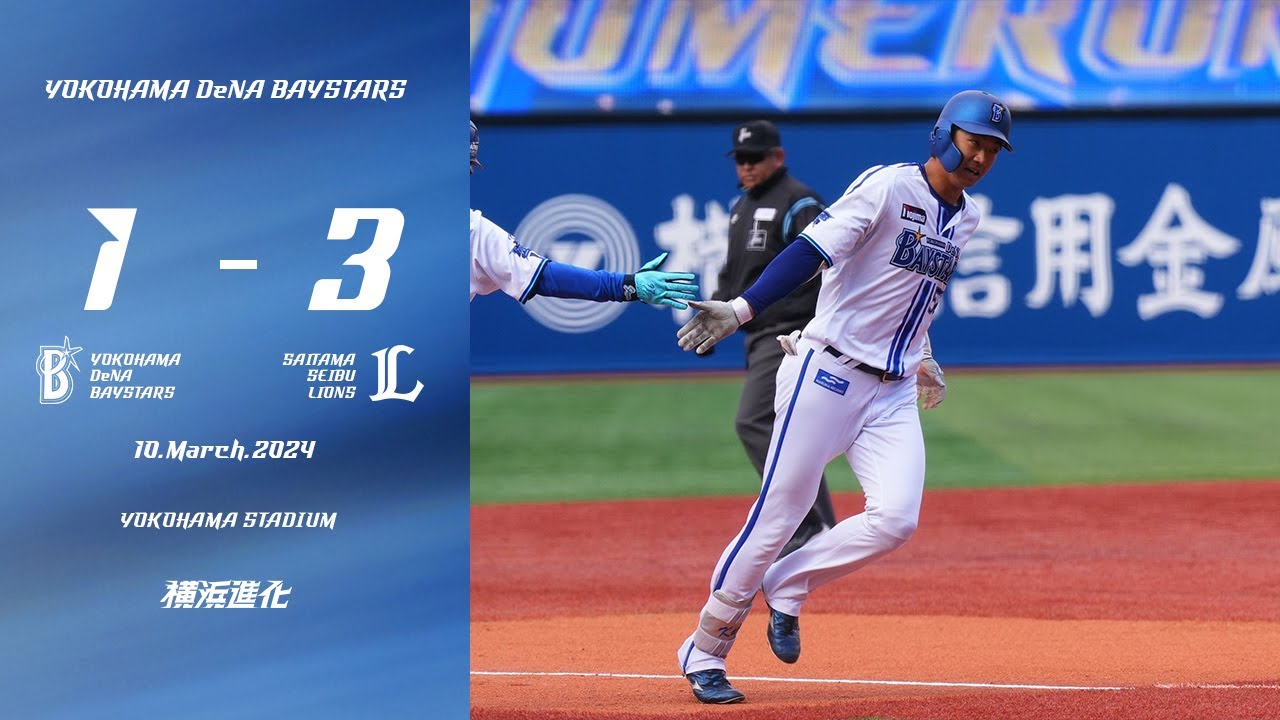 [音楽] さてベスター今日もライオンズとの オープン戦です1回の裏です今日も1番に 入った渡今日もヒットを放ちまし たライオンズ松本投手からヒットを放って これで大外試合10試合連続ヒットとなり まし たゲームは2回です先発の平がこの回2 アウトから3塁1塁ピッチを迎えました けども今日9番に入ってるをセカンドゴ ピッチを出しし ますその裏です昨日ホームラン放ってます 梶原今日は スタメン最初のバッターボックスで今日も 逆方向でし たさ中2試合連続のホームランクこの原の 一発でベターズが先制し ますさあ4回ですここまで平順調に来てい ましたけれどもライオンズの4番アに1発 を浴び [音楽] ますこれで1対1同点でこの後1アウト ランナー3塁1 塁古1の当たりはショートゴこれダブル プレーを狙いに行きましたけれども月崩れ になってこの間に3塁ランナーホームイン ライオンズが1点勝ち越しとなり ますさあそして2番手浜口 です今日は先発の平が4イニングス投げ まし4回2点という内容そしてこの5回 から浜口えまず最初の回はあのランナー 出しましたけどもねチェンジアップで三振 を取りましたさあそしてその裏2アウト から佐野がもう少しのホームランという フェンス直撃の2 [音楽] ベースチャンスを作りましたけれども4番 の石のこの 当りセンター西川のファイン プレー同点とはなりませんでしたさゲーム は8回 です今日は5回からマウンドに上がった2 番手の川口え8回まで4イニングつげまし た今日は4回無視点という内容でし たそして9回は3番手伊勢がマウントに 上がってい ますワアウトで渡辺 にこれ高タカと1発を浴び ます そのホームランで3対12点追いかける9 回の裏バウンド上増田投手が上がってま ランナー1人出しましたけれども最後は 飛ばファーストゴでゲームセットスターズ とライオンズのオープン戦3対1 ライオンズが勝利を収めています