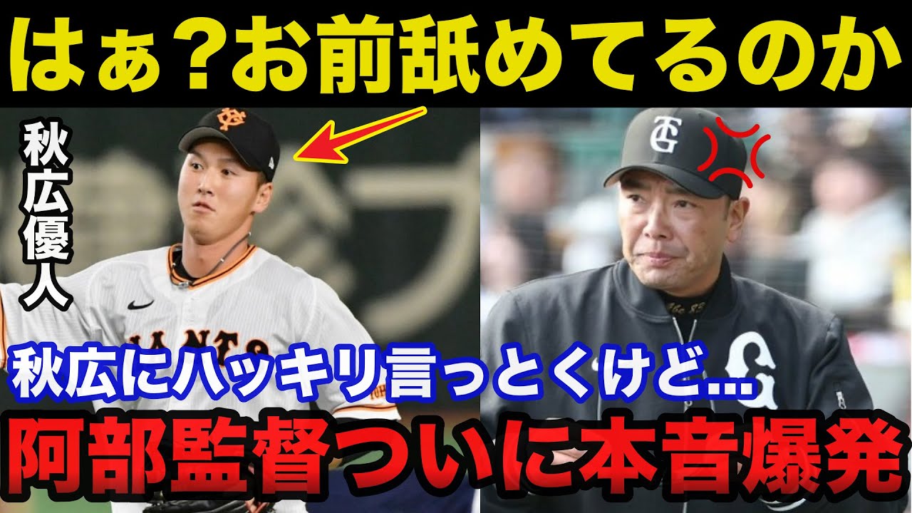 お前は野球を知らない2023年9会の 名主である巨人は2年連続でAクラス入り を逃す4位に終わってしまい腹立つのり 監督は成績低迷の責任を取る形で退任を 発表しましたそれでも低迷に苦しんだ巨人 の中で一筋の光となったのが高卒3年目で ついに才能を改革させた身長202mの秋 優でした月下旬からレギュラーに定着した 秋は最終的に規定打席にはわずか4打席 足りない439打席に終わったものの 121試合で打率2割並ぶ3厘10本塁打 41打点と素晴らしい成績を残しました そんな秋広は2024年から式を取る安倍 慎之助監督体制で中心選手に成長すること が期待されますが安倍監督は秋広に対して 期待の裏返しなのかとにかく厳しい言葉を 浴びせ続けているの ですそこで今回は安倍監督が秋広に厳しく 接する理由について紹介します最後に あなたの考えを是非コメント欄で教えて ください腹立つのにも絶賛した秋広の 才能誰もが見上げる聴診を誇る秋広は 2002年9月に千葉県船橋市で生まれる と幼稚園の頃からをプレイし始めました そして中学時代には野球だけでなく陸上部 にも所属していた秋広ですが高校は東京都 の競合校二松学者大学付属高校へ進学両に 入って野球付けの日々を過ごすことになり ますそんな中高校では野以外に投手でも プレイすることになった秋広は3年生の 春先からの2ヶ月で急速はあっという間に 140kmを超えると同時にに バッティングも距離が伸びピッチャーで ありながら打力も兼ね備えた流として注目 を集めまし たそして身長もぐんぐん伸びていた秋は 2mに 到達ドラフト会議で巨人からご意指名を 受けた際には慎重に大きな注目が集まり ましたまた高校では二流だった秋ですが 巨人は野として秋を評価したためプロでは 野1本で戦っていくことを すると1年目のキャンプ紅白戦で結果を 出しオープン戦でいきなり一軍に対当する など大きな注目は集めましたただ1年目2 年目はほとんどの時間を2軍で過ごし2m を超える体を支える体力作りに励んでいき ましたそんな中で迎えた3年目秋は開幕 こそ2軍スタートだったものの好調を キープし4月18日に1軍に昇格を果たす と2日のヤクルト戦でプ入初スタメン初 安打初打点を記録さらに29日の広島戦で はプロ初本塁を放ち一気にスタメンの座を 掴んだのですその後も校長を維持し続けた 秋広は5月25日の横浜線に3番で先発