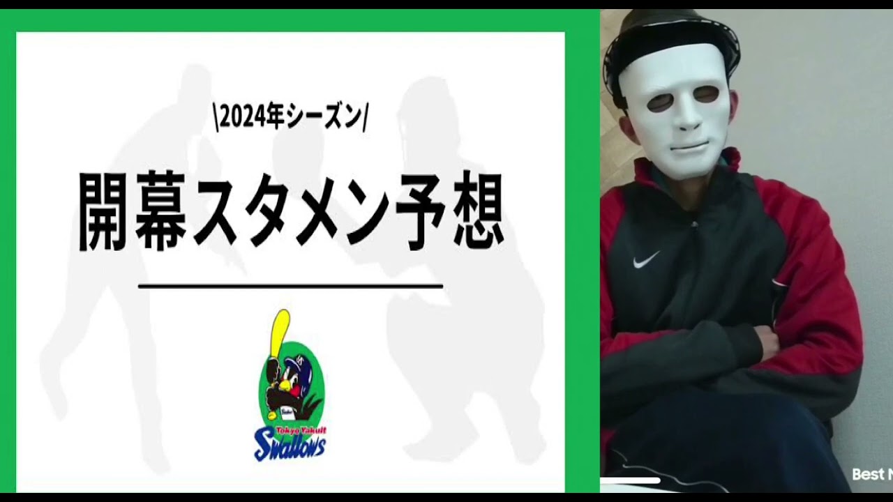 どうもマサなんです本日はですねえ 2024年のえ東京ヤクルトスワローズの え開幕スタメン予想をですねしていきたい と思いますえまず各ポジションのえ レギュラー有力候補を述べていった後にえ スタメンを行っていきたいと思いますまず キャッチャーから行きますキャッチャーは ま中村裕平選手で行くと思いますまほぼ ほぼ中村選手がメインで使われてでま たまにその若手の有望株である内山選手と かま古賀選手を使っていくんじゃないかな とは思うんですけれども中村選手がメイン で行くことは間違いないと思いますえ続い てファーストファーストはオスナ選手で 決まりだと思いますはい続いてセカンド セカンドは山田選手で決まりでしょうま ただ山田選手もまちょっと去年成績あまり 良くないですしまちょっと徐々に徐々に 成績が下がってきてるのでま今年もパっと しないような成績ま例えば2割台前半で 盗塁も1桁でとかホームランも20本より 下とかそういう風になってくるとま来年は ちょっと立場が危ういんじゃないかなと 思うんですけれどもま今年はとりあえず1 年通してあの出番は与えられると思うので ま山田選手が有力じゃないかなとは思い ますえついてサードは村上選手まこれは もしでしょうでショートは長岡選手だと 思いますまただ長岡選手ね去年の打率がね 2バ2りってことでちょっと打率が低いの で今年ま1年出番は与えられると思うん ですけどま今年も打率が2割2部とか2割 1部とかまそういう感じになるとま来年の 立場がちょっと危くなる可能性もあるん ですけれどもま長岡選手がとりあえず今年 に関してはま1年出番が与えられるんじゃ ないかなと考えていますえそしてガイア ですまガイアまセンターは潮選手でライト はサンタ選手まこの2枠は決まりだと思い ますただレフトが問題でレフトは結構 サバイバルポジションになるんじゃないか なと思いますレフトの候補としてはま浜田 選手だったり西川選手ね今年楽天から来た 西川選手だったりまあとベテランの青木 選手だったりまあとは並木選手あの瞬息の 並木選手だったりキャッチャーではあるん ですけども内山選手ま内山選手もま結構 外野で去年もね外野で出てる時もありまし たしオープン戦でもね外野で使われてる こともあるのでま内山選手も候補になるん じゃないかなと思いますあと今年からね ソフトバンクからまヤクルトにえ加入した え増田選手まこの選手も候補になるんじゃ ないかなと思いますま非常にその候補が 多いポジションなのでレフトに関してはな