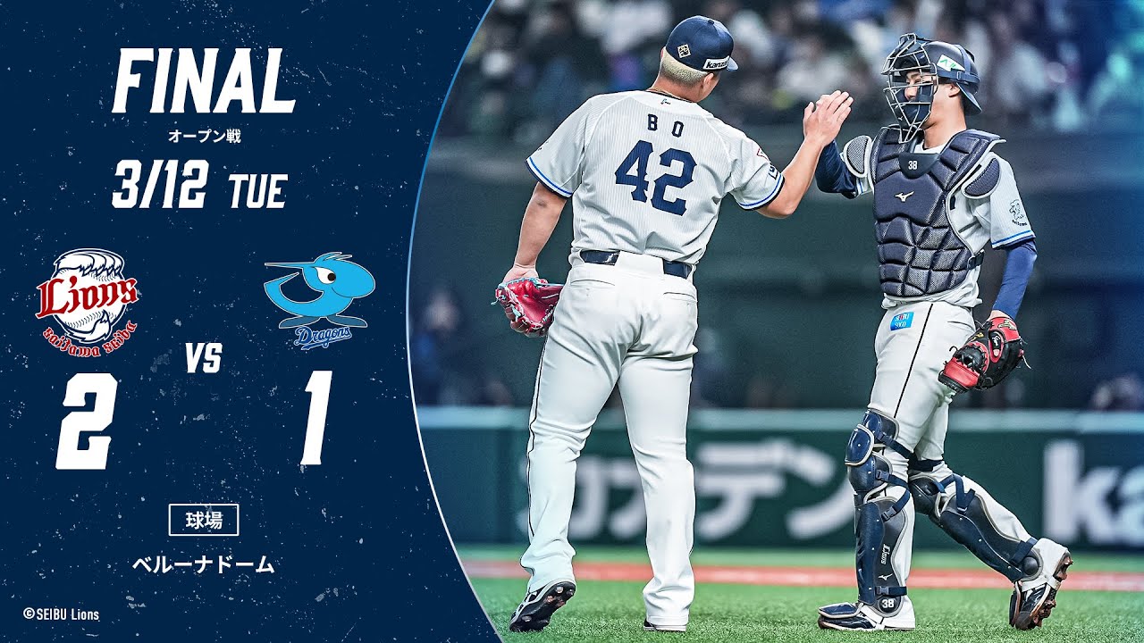 [3/12 結果] L2-1D 先制を許すも、5回に #元山飛優 選手の安打をきっかけに #外崎修汰 選手の適時打で追いつきます。 7回には、#牧野翔矢 選手の適時打で勝ち越し! 投げては先発 #平良海馬 投手が5回1失点、2番手の #ボー 投手が4回を無失点で抑えています。 #seibulions #オープン戦 #やる獅かない #プロ野球lionsOfficial ChannelOfficial VideoPACIFIC LEAGUEsaitamaSaitama Seibu LionsSaitama Seibu Lions Official ChannelSaitama Seibu Lions Official Videoseibu埼玉西武ライオンズ野球 NPBHUB.COM | The Fanbase of Nippon Baseball & Nippon Professional Baseball
