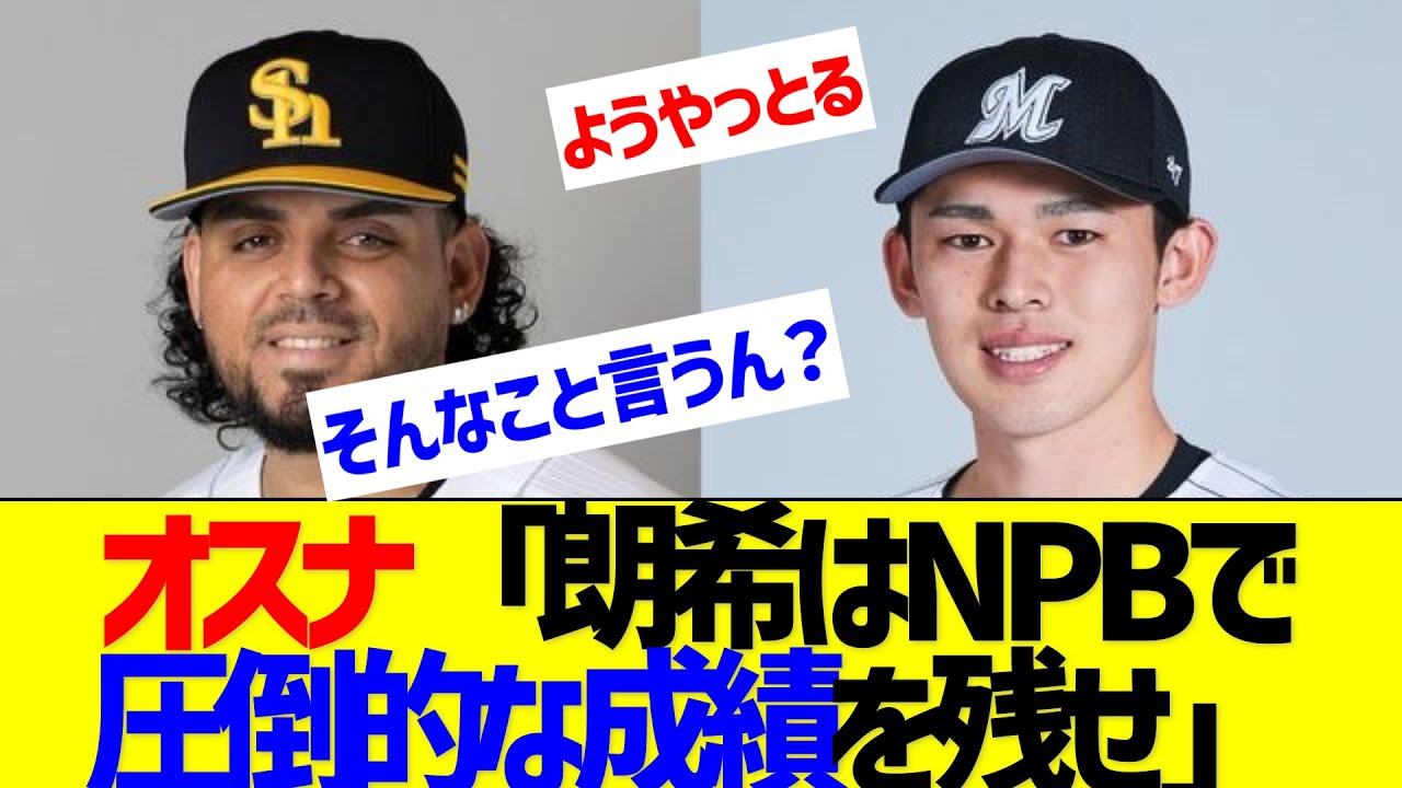 ソフトバンク押すな佐々木ロ気がすべき ことは山本吉信のようにNPBで圧倒的な 成績を残すこと押すな彼は間違いなく今 すぐでもMLBで通用するただ彼がすべき ことは1年合だけがなくイニングを投げて 山本吉信のようにプ部で圧倒的な成績を 残すことそうすれば彼のムルブでの評価は さらに上がる年下だが彼は人間的にも 素晴らしく尊敬している是非これからムル に挑戦する投手の理想的なモデルになって ほしい オスなってなんでプブいるの4年40億だ からちゃう誰この人日本にいても年10億 もらえるし満足しとるんやバウアーと同じ やろ3か限定選手じゃあかんの最初から 期間限定でええやんああ千葉にいた元ただ の中継の人かでも本人が規定超える気が ないよね目標にすらしてないご視聴 ありがとうございますプロ野球のネタを介 しています白い話題があったらコメントで 教えていただけますと嬉しいです よろしければチャンネル登録高評価 よろしくお願いします