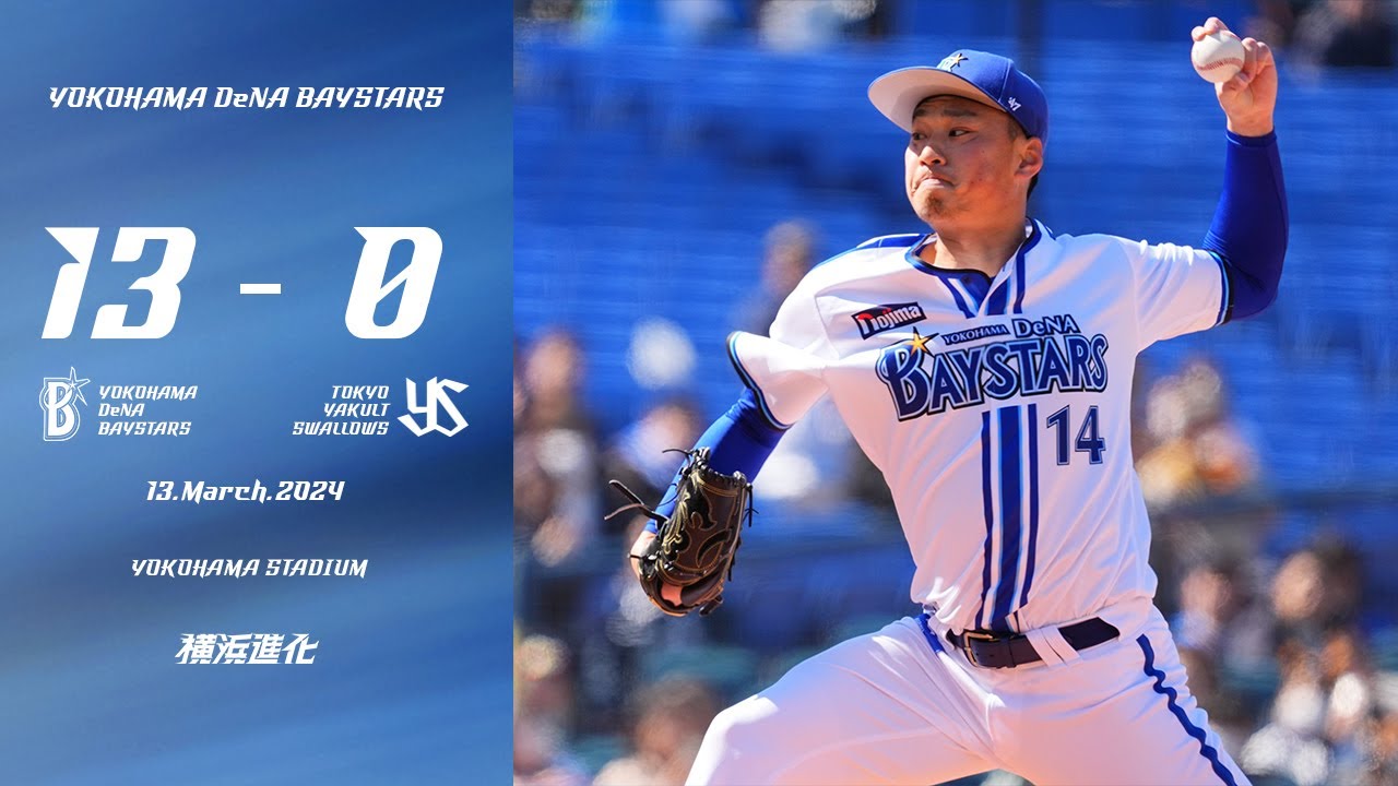 さあそれでは今日のオープン戦を ハイライトでご覧いただきましょう 立ち上がり1回の裏のベースターズです サイスニードから宮崎がランナー2人を 置いて2アウトから3ランホームランで 先行するというスタートま佐野のショート へのナイアンダが川でちがデドボールで 作ったチャンスでし たそして先発の石田 この3回の表2アウト潮見を小とこにって ま立ち上がりはちょっと球数が多かったん ですが2回3回はナイスピッチングでした 3回の裏 ですサイスニードに対して渡が口の ヒットそしてその後エコバアスレえ オースティンがライトオーバーの2ベース で2塁3塁というチャンス内でまず1 点さらに石がセンターへ犠牲フライを放っ てもう1点この辺は本当にまある意味 ヒットで返せば一番いいんですけれども形 としては理想的な形で追加点を取ってい ます2アウトランナーなしになって宮崎が ライトのホール際に板席連続のホームラン を打ってス6対0とリードを続けたベース ターズ [拍手] です石サイニング千を挟んでウェンデル ケン5回1アウトランナー1塁2塁松本 直樹粘られましたがサードゴ察だ井上から そしてセカンドを経て543のダブル プレイウェンデルケチム無失点です6回の 裏ベースターズの攻撃スワローズの ルーキー松本憲吾に対し てノーアウト2塁から楠本 が宇宙間にタイムリー2ベース さらに伊藤光フェンス直撃のタイムリー2 ベースもうちょっとでホームランこれで8 対 でさらに関根がこのナイアゴロセカンド 山田のア球ということで1点加えました この辺はスワローズとしてはしっかり守り たいところでしたでさらにオースティンが もう完璧打った瞬間にホームランと分かる 豪快な3ラホームオープン戦第2号で12 対0とリードを広げ ますさらに2アウト2塁 から梶原がタイムリーヒットを放って13 対0という打者11人7点を取るという 攻撃でした6回の 裏8回です8回の表のスワローズの攻撃 ピッチャーは4人目の大き2アウト ランナーなしで潮見をピッチャー ゴロ大きサイニングを投げて1安打無視戦 でしたで9回の表はピッチャーウィックに なって2アウト2塁から赤羽をストレート