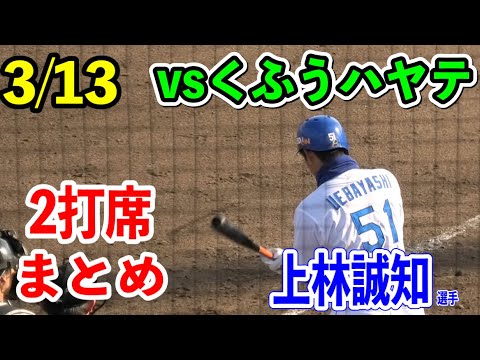 【客席から『上林待ってたぞ〜』との声も!】教育リーグくふうハヤテ戦で途中出場の上林誠知選手!!本日の2打席!2024/03/13