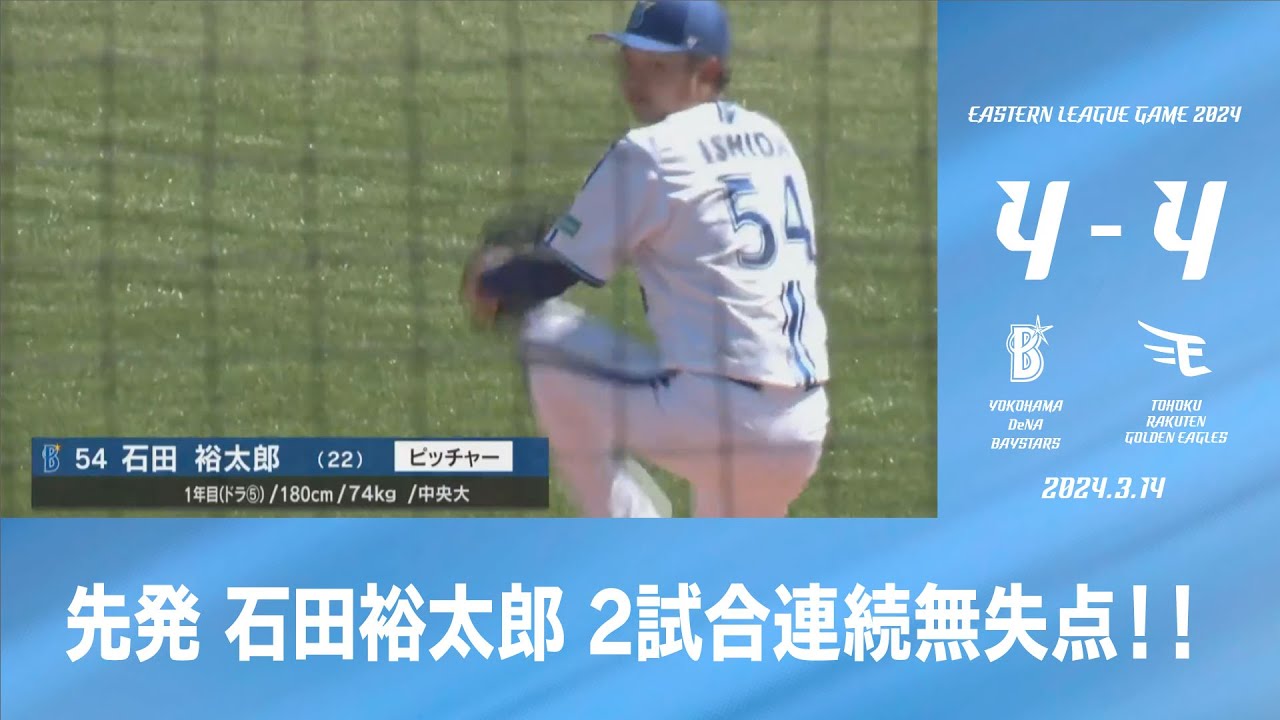さあご覧のようにイーグルス2タンえ ハイライトご覧いただきたいと思い ますさあ今日DNAの先発ピッチャーは ドラフト5ルーキーの石田裕太郎 立ち上がりランナー1人出します が0点で立ち上がり ます一方 石川県の 松井さ1に元気勇気を届けたいという中で 3者本体の立ち上がりナイス ピッチング石田高頭続きます3回の 表最後はセカンドへのハーフライナー2回 連続でに抑えて無の石田 太郎4回3回の 裏 DNAダブルプレーで3人で攻撃終了松井 友ここまで無視 点4回の [拍手] 表 録はヒットになりましてタイムリーヒット 先 はイーグルスの4番の 長田そして5回の 表これはピッチャー教習のあたり王号の タイムリー ヒット2点を先行します イーグルス5回の裏の DNA先発の松井 友 マレフトフライこの4回5回と3者本体 結局松井友貴は5回無失点というナイス ピッチングでし た7回の表です イーグルス代打の江川がライト フライもを上げられません7回の裏 チャンス [音楽] [拍手] で前に守っていた左中間 突破小方の 同点2点タイムリー2ベース ヒット試合を振り出し戻し ます続く 相原ここも前に守っていたセンター オーバー 小方ホームインで [拍手] 逆転さらには続く代打の上里こちらも レフト オーバー6回まではわずか1安打だった ディエネー打戦7回に 爆発試合をひっくり返しましたが9回の表 ランナー3塁2塁 から今日4安打目3打点目を上げた王号の