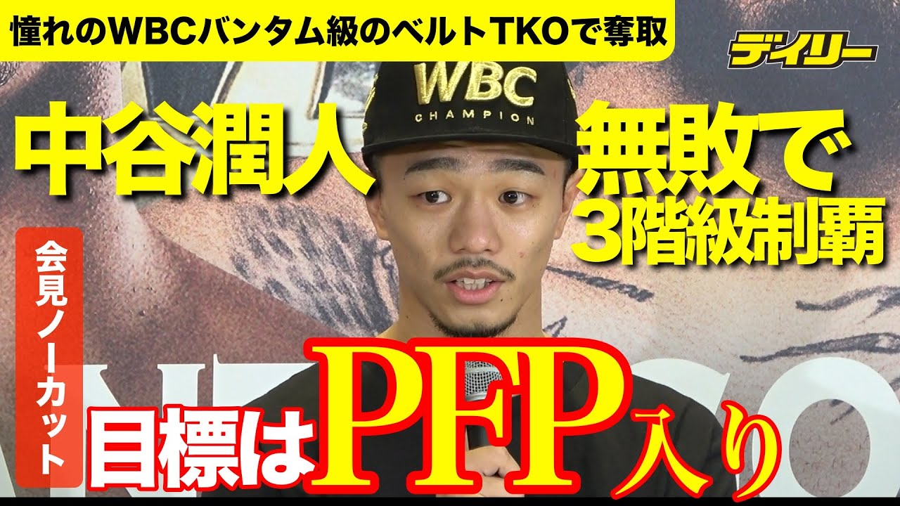 プロボクサーだっていう風に思うので ま僕のま倒すシだったりとかそういった ところを あの期待してこう待ってくれてる人が増え たらいいなっていう風にはあの思ってるの でまそういったところでもまバンタム級に あげてより期待してもらってる部分は感じ てたのでまそれをあの結果として出せてま まずはほっとしてるなっていう感じです あの昨年のえっと最優警報賞なども受賞し てますけどま今日もまたえっと少しまた それとは違う感じですけど自分のその ボクサーとしての魅力というか勝ち方の なんて言いますかね特徴というかそういう のは自分ではなんか感じてる思ってること てのありますかそうですね あのあまり特徴がないというか あのここが強いっていうインパクトのある 感じはあんまないかもしれないですけどま 遠い距離だったり近い距離だったりで相手 を攻めていけるま対応していけるってい ところが僕の持ち味だという風に思ってる のでまそういったところを見てもらい ながらどうノックアウトするのかっていう のを楽しんでもらえたらまた違うの見方を してもらえるのかなっていう風に思います ねありがとうございますありがとうござい ますはいその他の方いらっしゃれば はい3Kスポーツの崎ですおめでとう ございますあとございますえっとま憧れの WBCのベルトってことでえっと会場には 山中さんだったりえ長谷川さんだったりま 前持ってた尚弥選手もいましたはいはい えっとまこことある意味ま達さんとかも 不明レジェンドたちと比べられる立場に 同じベルト持ってるしなると思うんです けどはいそこの絵のなんか意識というか 歴代の選手と比べられるみたいな気持ちっ ていうのはあるんです かそうですねま比べるというよりかはま僕 のさっきも言ったようにこうコンテンツと いうかあの色を見てもらえたら嬉しいなっ ていうま本当に歴代のレジェンドたちもも すごいボクシングあのなんでままた違う僕 の中谷順とのボクシングっていうのがの 楽しんでもらえると思うのでまそれを期待 してもらってこのWBCバンタム9って いうタイトルを取れたっていうのはすごく はいまずは嬉しかったなっていうのはあり ますねえと山中さんだったり長谷川さんと はまだ話してないそうですねまだはい話し てないですこれ試合前とかには何か話し たりしたことってあったですかああの山中 さんとはあのえっといつだった記者会見の 時かなの時にちょっとお話しさせてもらっ