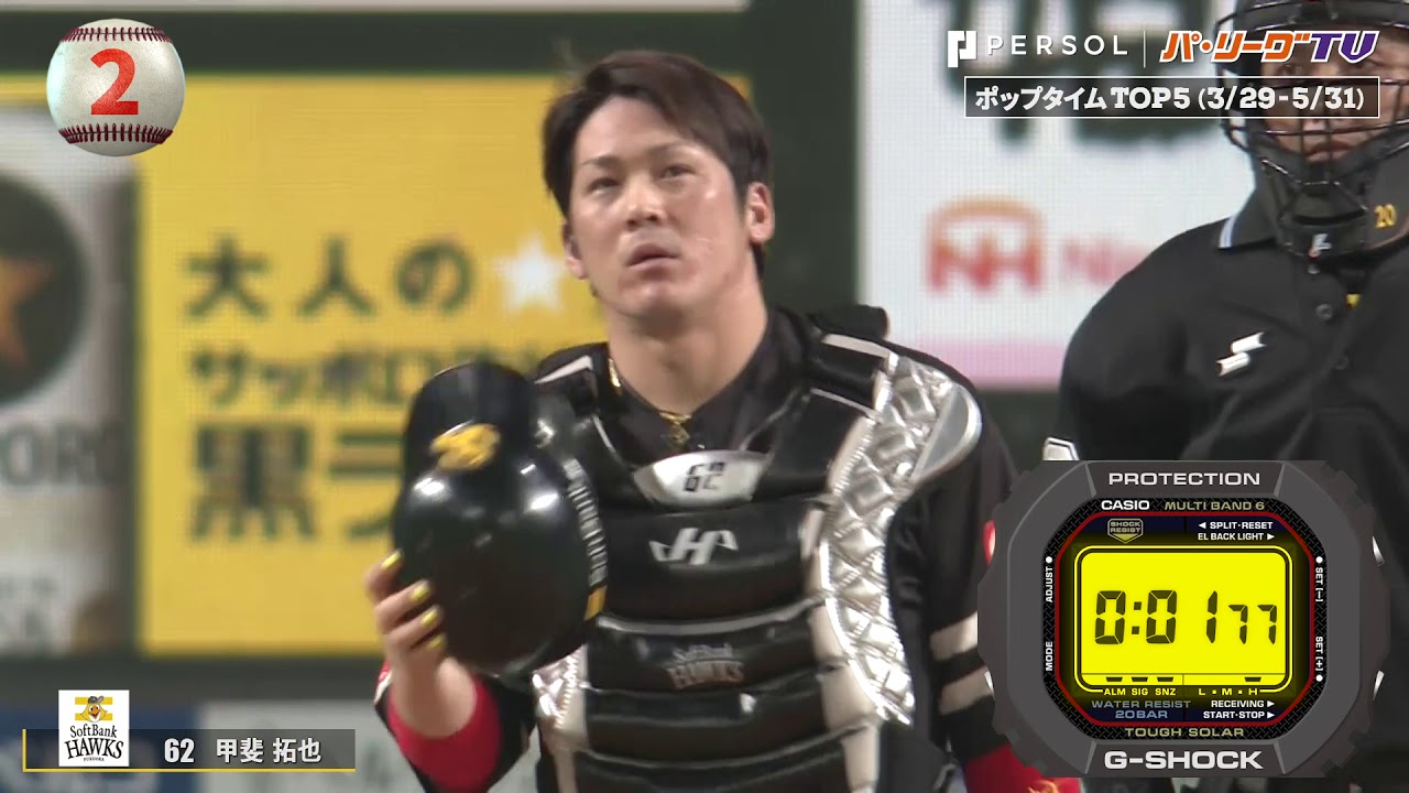 盗塁は許さない!パ・リーグ屈指の快足選手たちを塁上で仕留める、捕手のポップタイム(捕球から2塁到達まで)をG-SHOCKの協力のもと計測!あの選手が上位を独占!?
