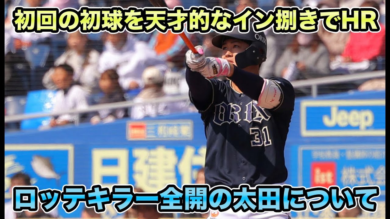 しては太田選手完璧だったそうですねもう 積極的に行こうと思っていてEスイング できたまその結果であるとえいうことでし たでこないだね静岡でのま試合でも2本 ヒットを打っていたということでしかも 一方はねセンターオーバの3ベースという な状態だったので非常にこうね状態がいい のかななんていう風に思ってたんですけど もここでねようやくま火を吹き返したとえ いうことでございますま打席数が少ない ですからね急にこれでま3割5分まで来た わけですけどもどうでしょうか開幕スため もちょっとねえ近づいてくるそんな座席 だったかなという風に思いますところが ですね1回の裏オリックスが初球で点を 取ったらですね今度ロッテも初球で点を 取るということで岡広美選手がですね同じ 形でえレフトスタンドに初球をぶち込むと いうことでま世にも珍しいえ戦闘打者ホム しかもえ2人とも初球というねなかなかに え珍しかったですけどこれがシーズンやっ てたらまあ大盛り上がりするだろうなとま いう風に思うわけですよ山岡投手ま全然 良くなかったわけですよねでホームラン だけでえ終わったのが小島投手なんですが 終わらずとえいうことで外選手にはヒット 打たれて山口選手にもヒット打たれて安田 選手にフォアーボールで満塁これで犠牲 フライでえ逆転を許すとえしかもその後に もですねフォアーボールを出してしまうと いうことでなかなかにちょっと請求で 苦しむようなまそんな日だったのかなと いう風に思うんですけど2階の表に行くと ですね今度オリックスがまた逆転するん ですねセデニが逆転のホームランという ことでスライダーをバックスクリーンに ホームランでねやっぱバックスクリーン センター方向へのホームランが本当にセデ ニ多いなとえいう感じですよ素晴らしい 打球でしたそのまま2回の表大太選手は ですね本当に小島投手と相性がいいのか 打席目回ってきましてセンターにヒットを 打つとえいうことで非常に好調な感じで ございますがえそのまま2回の裏行くと ですね今度外選手がホームランで同点とえ いうことで点を取れば取られたりっていう も繰り返してですね山岡投手もえ援護して くれてもそのまま吐き出すってような今日 は試合展開だったかなという風に思います で4回の表ですね今度中川慶太選手を2塁 に置いた状態で広岡選手がタイムリーを 打つとえいうことで素晴らしいすよもう ずっと調子いいからね本当に開幕スタメン 掴んで欲しいですけどもサードには胸がい てえDHにはセデを置きたいそんなことを