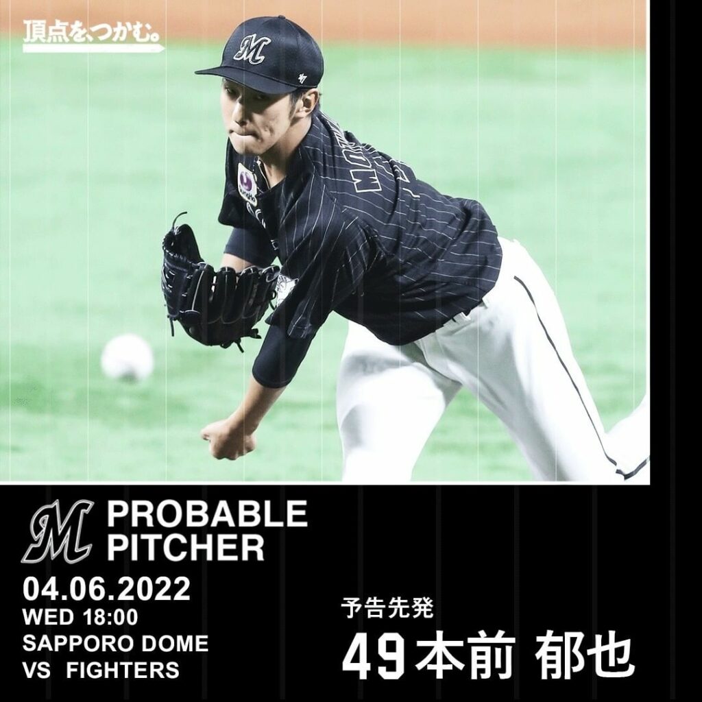 04.06.2022 予告先発:#本前郁也 投手 #chibalotte Chiba Lotte MarinesChiba Lotte Marines Official MediachibalotteNPB Pacific LeagueOfficial Media千葉ロッテマリーンズ本前郁也 NPBHUB.COM | The Fanbase of Nippon Baseball & Nippon Professional Baseball