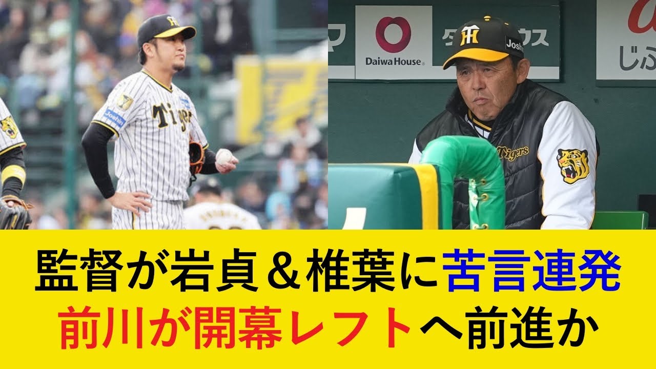 今回の動画ではタイガースの最新情報とし て岡田監督が中継候補のシバ選手と岩田 選手に苦言を呈した件についてそして前側 選手が開幕レフトに前進した件について 紹介していきます是非最後までご覧 くださいなおこのチャンネルは熱狂的な 阪神ファンによる阪神だけに特化した チャンネルになり阪神に関連しない動画は 一切投稿しませんそのため阪神ファンで チャンネル登録がまだの方は是非 チャンネル登録をお願いいたしますでは まずシバ選手と岩田選手について見ていき ましょう前日に5点差をひっくり返された タイガースは佐伯選手の大役として先発し た富田選手が序盤に失点をきし苦しい展開 となりますしかし4回に同点に追いつき 試合は中盤へ同点の5回に2番手として 登板したのがシバ選手でした 先頭の浜田選手に真ん中高めのストレート を捉えられながらもレフトフライに 打ち取るとその後の北村選手潮見選手も レフトフライに結果だけを見ると11球で 3者本体に打ち取る上場のピッチングに 見えますが3選手ともに捉えた打球で 決して良い内容ではありませんでした試合 後岡田監督はシバ選手について今日なんか 全然やったな腕ふれんとなどっか故障し てるかなと思ったよ今日はあんだけ腕ふれ んかったらなそえ当たりされるよそれは たまたまアウトにしただけやろとばっさり 全く腕を触れておらず故障すら疑ったよう です前日の試合でもストレートの休息が出 ておらず今の状態では今後も一軍の打者を 押し込むのは難しいでしょうそんなシバ 選手以上に苦しいピッチングとなったのが 4番手で登板した岩田選手です オープン戦初登板となった岩田選手は先頭 の増田選手に粘られてフォアボールを 与えると続く松本選手のピッチャーゴロ セカンドへ悪草球自らのミスでピンチを 広げる形となりました続く赤羽選手にも フォアボールを与えノーヒットで満塁の ピンチに浜田選手に押し出しとなるデッド ボールを当ててしまい勝ち越し点を許すと 犠牲フライとタイムリーでつで失点1で3 点という苦しいピッチングとなりました 打たれたヒットはわずかに1本で四球3つ と自身のエラーが絡んでの3失点というの はかなり印象が悪いはずオープン戦初登板 とはいえベテランがやってはいけない ピッチングでした岡田監督は岩田選手に ついて心配って全然投げてないんやからと 研究続けてブルペンで良くないピッチャー は全然あかんやんかだからそのブルペンの ままが出ているよなとブルペンの段階から