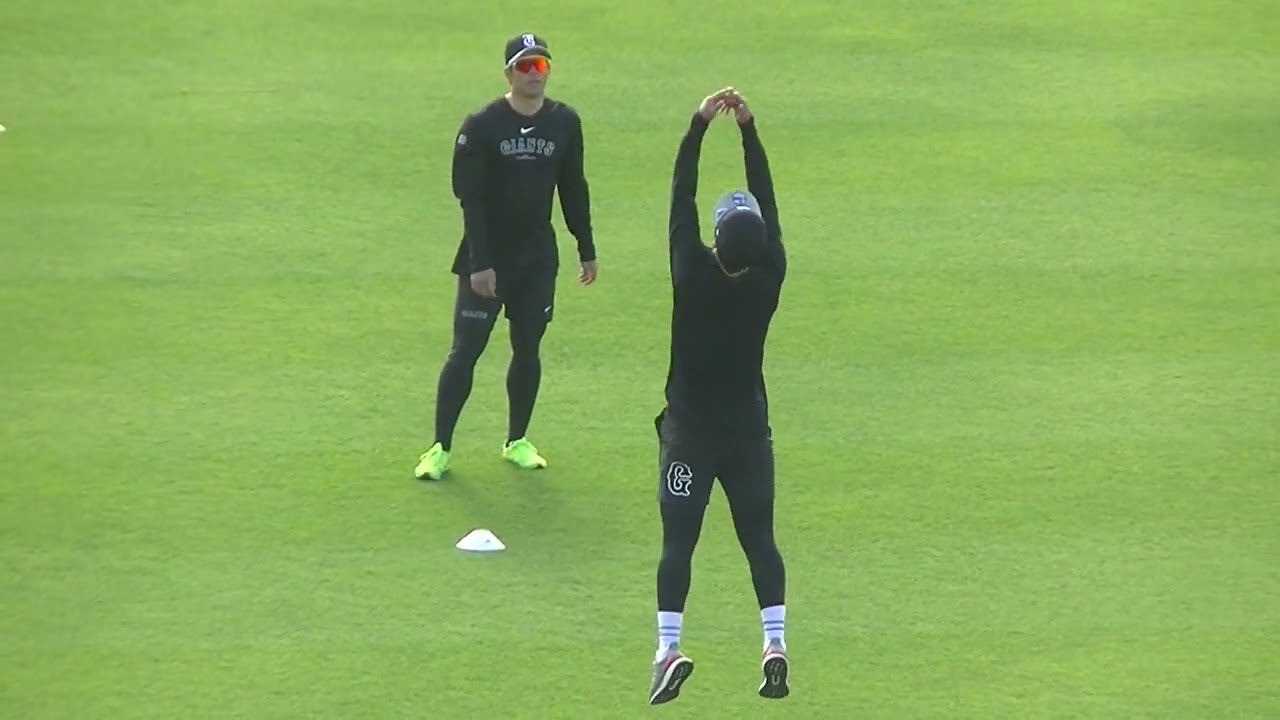 【巨人】メディソンボールを投げ合う吉川尚輝と松原聖弥【2024年2月21日 読売ジャイアンツ沖縄キャンプ】