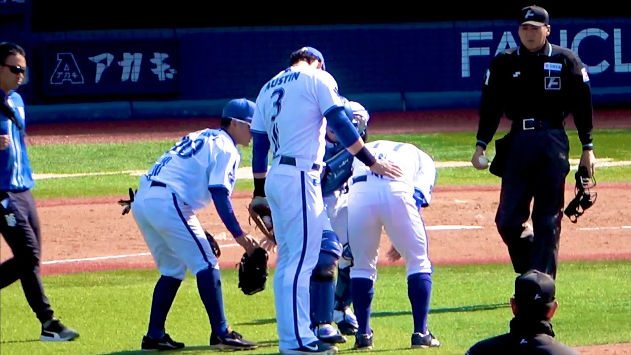 東大丈夫? うずくまる東にダッシュで駆け寄るオースティン 横浜DeNAベイスターズ 2024/3/15