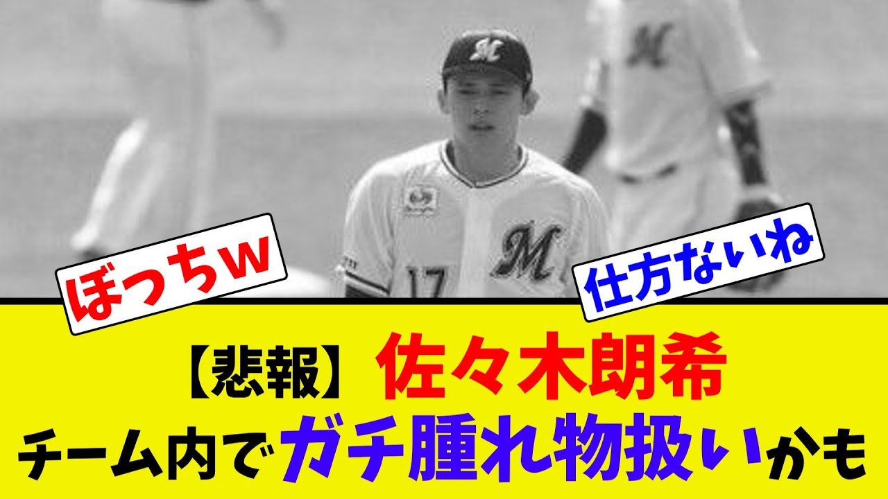 秘方佐々木ロキチーム内でガチ腫れ物扱い か も昨17日の楽天戦に先発したロッテの 佐々木ロキ22が4回6安打4失点初回に 3本の2塁打を含む4安打1死球と 畳みかけられいきなりの4失点で点を青い だメジャー挑戦を巡ってオフに吸ったもん だOBやファンからは厳しい声が飛んだ 今期終了後にも海を渡る可能性があるな チームメイトとの決裂があるのか打ち込ま れている佐々木に対して内野人が誰1人 近づいてこないでは珍しい光景となった今 ちょうどルーキーズ呼んでるけど初期の 川上みたいなもんやなそら組み合い入って ないからな漫画で言うとアメリカの空気を 吸うだけで高く飛べると思ってた人身も ある今シーズン終わったら出ていくしどう なろうがえんやろチームメイトに感謝とか したことなさそう心の中にいつも宮城が おるから ね野球ってチームスポーツなんだよな結局 なんでこんなに増長してしまったんだ 完全試合した年は割と虚だっただろ 甘やかした結果モンスターが生まれたん 後パテレでも佐々木じゃなくて謎の選手が 球団の顔みたいになってるしようわからん が日本国内でチームに溶け込めないやが 海外で溶け込めるんかロッテは希望した チームじゃないけどメジャーは希望した チーム入れるから入りたいと思ったチーム のやつとは仲良くするん やろ1度も受賞もしてない投手がなんで こんな偉そうなんややってないだけで実力 的にはそのくらい絶対できるものを持っ てるから名誉2桁勝利投手や結果出せば 勝手に人格者ってことになるぞソースは 大谷ここまで露骨な腰かけ今までいたか 試合見とるとマジで誰も声かけないからな ベンチじゃて下松かはカスケットくらい やろお互い息苦しそうご視聴ありがとう ございましたチャンネル登録よろしくお 願いします