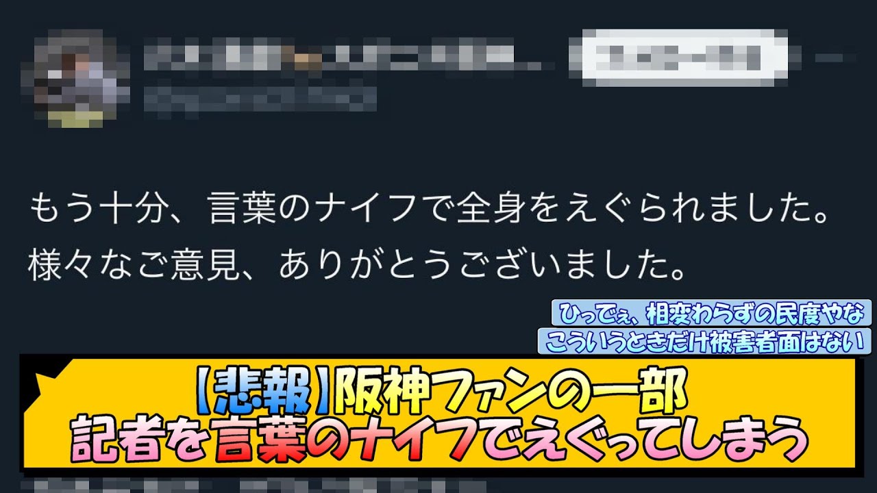 方阪神ファンの一部記者を言葉のナイフで えぐって しまう何があったんやヒって相変わらずの ミドやなこいつは佐藤照明アンチに違い ないって 決めつけ引用リツイートやリプでグサグサ さされまくっ てるでもこいつらも大概な批判記事書い てるしなこういう時だけ被害者らはない わこいつは手のこと散々言ってた自覚は ないの普段選手に向けて振り返すナイフの 切れ味体感してしまったか記者も日頃 うんこみたいな生地書くのが悪いんやもう 一生スポには買いませんご意見ありがとう ございまし たって全然反省とかない模範例 みたいたった一言のごめんなさいが言え ない 大ここにおるお前らも言えないから同じ やろって言われてもしゃあないようなこと したん か大したことやないよ砂糖下げる記事書い ただけあの記者もアカウント分けて発言 すれば後はならんかったの にこれからもなJの面白いスレを取り上げ ていくのでコメントチャンネル登録高評価 よろしくお願いし [音楽] ますJA