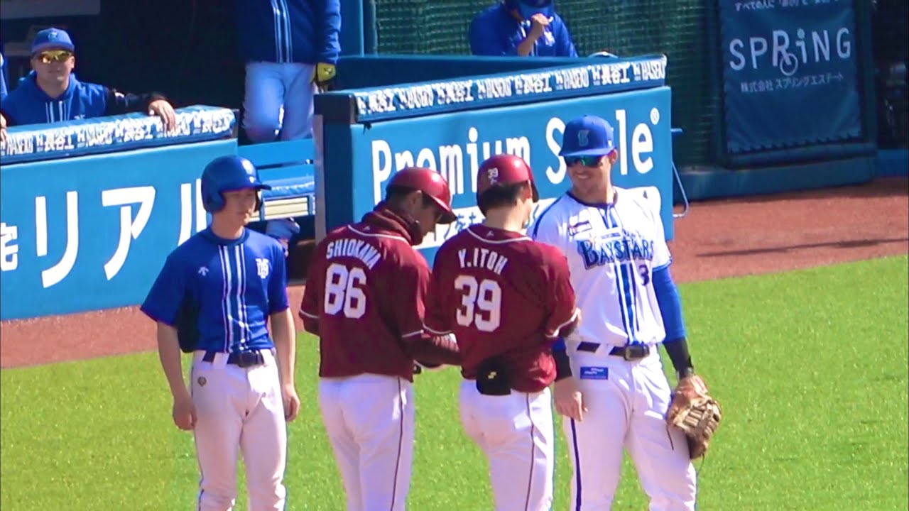 【再会】伊藤裕季也がヒットを放って、嬉しそうにするオースティン 横浜DeNAベイスターズ 2024/3/15