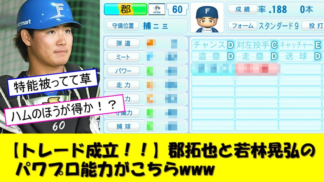 氷タヤと若林明広のパワプロ能力が こちら特のかぶってて 草ほら全部氷より能力上じゃんシンプルに 両チーム使わない選手同士でトレードした だけだな 若林に二感は期待しない方が良いよ疲労か より増し程度サードとレフトはそれなりに 守れる氷君は打撃力が低くキャッチングが 微妙でリードは波壁性能は中の毛していう なら保守なのにユーティリティなのが売の 保守 です正直わて保守は振動たがいて余し気味 だったからな清水古川より優先度低かった にとってはいいトレードだと思う よならま細川があまりに期待外れで動いた な栗山よい仕事する わ