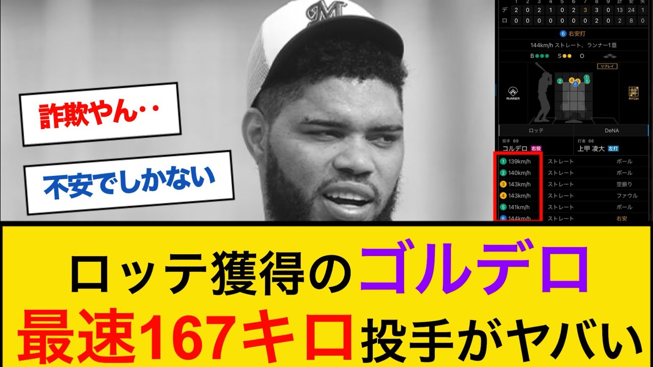 宝ロッテが獲得した最速167kmウワン コルデロがやばい け何これ 話が全然違うじゃん詐欺じゃんまだ寒い 時期だから150スラで取らんみたいや けどまだ全力で投げてないんか140km なんですがそれはそもそも167ってのが 本当なのかとか怪しいわ調整不足でも 150は出るやろ去年普通にで投げてたや でメジャーなんだから映像いっぱい残っ とる急速はガチやで日本なめててただの 調整を遅れよスピードガンはおかしかった とは思うとりあえず投げられたのは 朗報実績は間違いないから開幕までに調整 して くれ