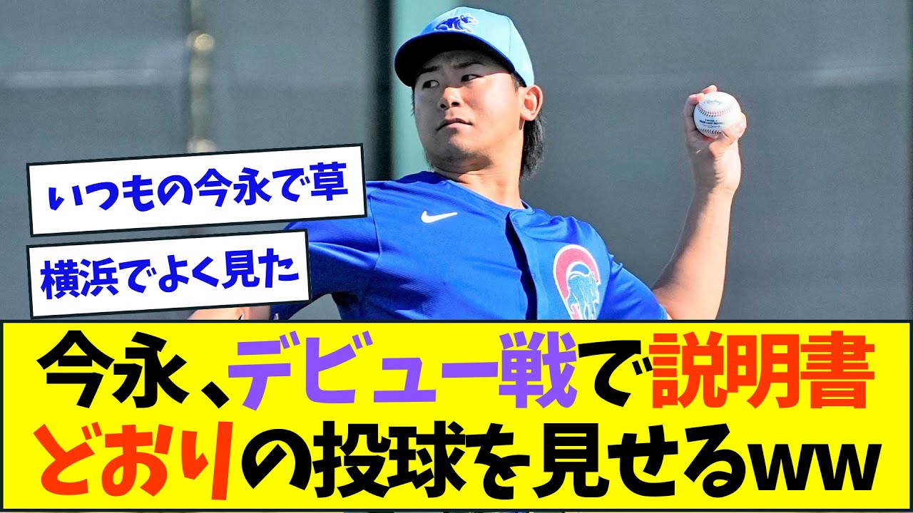 今長出流戦で説明所通りの得票を見せる カブスの今永翔太投手は2日日本時間3日 敵地でのドジャストのオープン戦で メジャーデビューを果たしたこの日初回に 戦闘のロハスを左に仕留めると続く フリーマンからメジャー初出三振を記録し た3番スミスは右日で危ななく参し本体で 抑え込んだ2回は戦闘の満水テオス ヘルナンデスミアンダを許し無位2塁の ピンチを作ると23歳のパスに左翼スリー ランを浴びたその後は立て直し3者連続 三振で2回を占めた3回は戦闘のロハスを 空振り三振に仕留めたところで交番2回 1/3を3案三振店舗脱三振だった敵機 放送局スポーツネットロサンゼルスの実況 を務めるティムネベレット氏もホームラン を打たれた以外はいい投球でしたと コメントマウンドを降りると観客から拍手 が送られた行ったいつものイナで草説明書 通りの投球や横浜でよく見たイナや クリーンヒットナイアアンダホームラン 効率位失点だったあまりに取説通り気障が そうなら何の問題もないじ実質に知ってん だから希少癖はかということかまあ三振 取れてるからええやろ噂とはさすがに違う でもボケ忙しい登板やったなこの時期に傷 は問題ないだろ思ったよりやれてる印象だ が切れがた渡るとよく分やな象あって三振 もちゃんと取れてるけどどういう評価に なるんやよままスタンダードほんま秘書 するよなメジャーに行っても日本での同級 となんだ変わらぬ姿を見せるという安定感 皆が想定していた通りの結果で驚きもない のが笑ってもっ た噂よりマだから噂と違って次は期待でき そうな評価やろな普通にある程度悲傷は 仕方ない今回はだまだま3ランだったって 感じや左ピッチャーは割り引いて見るべき だと思ってるから1年目の菊優勢ブらで来 たら上出って感じかな日本はそこそことも 早くテストライク取れるぐらいの コントロールある左は成績残せるからな メジャーではそれだけじゃダメだけど 三振は取れてるしランナさえ貯めなければ 大丈夫やろご視聴ありがとうございました 高評価チャンネル登録よろしくお願いし ます