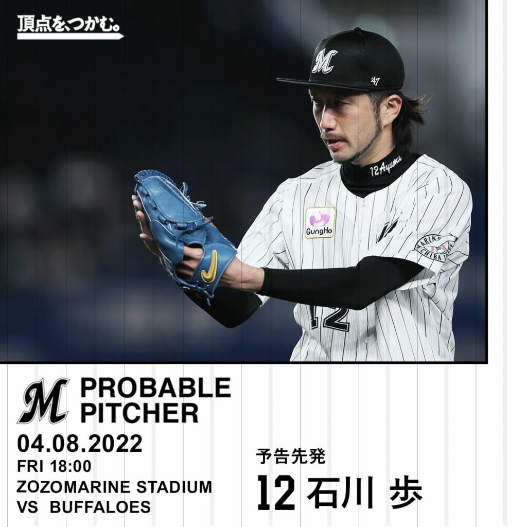 04.08.2022 予告先発:#石川歩 投手 #chibalotte Chiba Lotte MarinesChiba Lotte Marines Official MediachibalotteNPB Pacific LeagueOfficial Media千葉ロッテマリーンズ石川歩 NPBHUB.COM | The Fanbase of Nippon Baseball & Nippon Professional Baseball