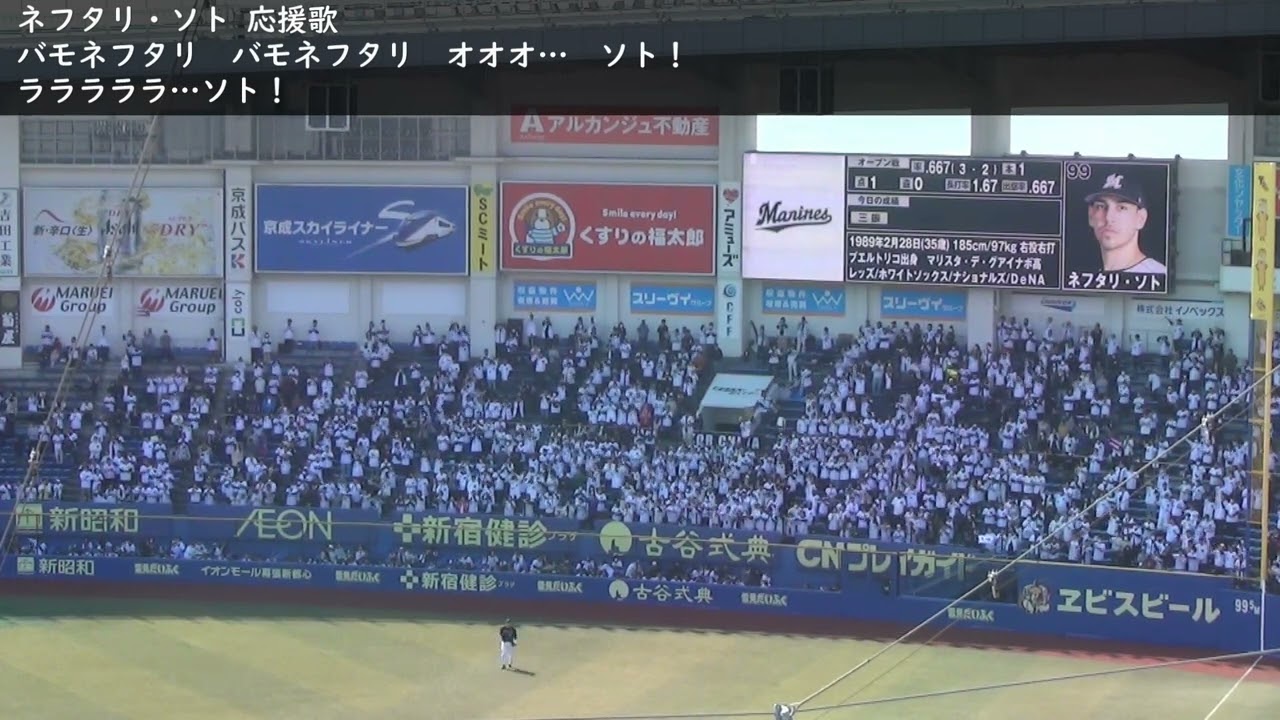 #千葉ロッテマリーンズ #応援歌 #ネフタリ・ソト 千葉ロッテマリーンズ ネフタリ・ソト選手の応援歌です。 バモネフタリ バモネフタリ オオオ… ソト! ラララララ…ソト! #プロ野球YOKOHAMA DeNA BAYSTARSソト 野球マリーンズマリーンズ応援歌ロッテロッテ応援歌千葉ロッテ千葉ロッテマリーンズ応援歌横浜DeNAベイスターズ野球 NPBHUB.COM | The Fanbase of Nippon Baseball & Nippon Professional Baseball