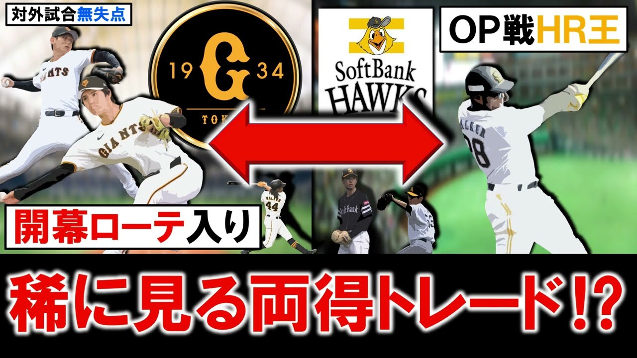 ところもねパリーグ去年20本台の争いで ございました同じチームにね山川選手がい るっていうとこはあるんですがただやはり そこに加わってくる可能性もあるだけに 巨人ではねあまり使われなかった選手が 遺跡で生き生きしてるってところは本当ね 何よりかなっていう風に思いますがで こちら見ていきましょう高橋令普通にし ウォーカーも爆してるしウィミンじゃない あは泉がどれだけ行けるかということで はいでそうですね巨人に関してはやはり こう高橋例がね非常にいいっていうところ でございます買グローもね決まっており ますし最後今日投げた時も良かったで シーズン入ってどこまでねやれるかつは 分かんないですがただやっぱ期待はここ までできるのかなという風に思いますで ウォーカーも一方活躍しておりましてそう 考えると今のところウンウンであとは やっぱ泉選手ですよね今ね2軍で状態は いいんですが1軍でどういう風な ピッチングを見せてくれるかこう高橋レ 選手も活躍して泉選手も活躍すればやはり ねこうスケットを出して一軍の戦力を2人 獲得できたというところであれば ウォーカーがねどれだけ打ってもやりこう 損っていうのはないのかなっていう風に 思いますしソフトマンからしてもね高橋泉 多分今年の構想にはね入ってなかったよう な選手だとは思うのでそこを出して ウォーカーを取れたっていうところもね 色々大きいのかなっていう風に思いますし 本当に両軍ウンウンなトレードになりそう ではあるんですがここ本当楽しみではあり ますよねはいというわけで今日は以上です よければチャンネル登録コメント高評価 などいただければ嬉しいです野球人で ございましたせのゲームセットありがとう ございました