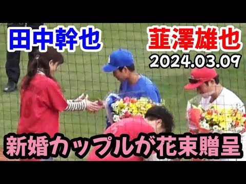 2024.03.09、広島カープ vs 中日ドラゴンズ@マツダスタジアム。 20240309 本日の支援は方株式会社による方株式会社 メタリカスポンサードゲームとして行われ ております試合先立ちましてただより増式 を行い ます田中選手広島東カップ沢選手はホーム ベースの前へお越し [音楽] ください 井株式会社新行カップル小寺高様小美様の お2人より花が怒られ ますスタの皆様定拍手をお願いいたし [音楽] ます ありがとうございました以上で増式を終了 いたし [音楽] ます Hiroshima Toyo Carp広島東洋カープ韮澤雄也 NPBHUB.COM | The Fanbase of Nippon Baseball & Nippon Professional Baseball