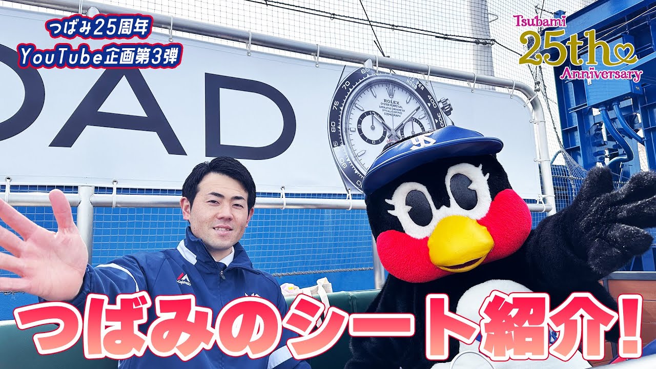 つまみちゃん今日は神宮球場紹介スタンド 編ということで見ていただいてる皆さんに 神宮球場の魅力をしっかり伝えてください ねそのためにお席に詳しい人呼んだあそう なんですねでは早速来てもらいましょう どうぞお願いします願いしますお願いし [音楽] [拍手] ますチケット担当の川村さんですお願いし ますよろしくお願いします川村さんは普段 どんなことされてるんですかえっと普段は えチケットの業務あの一般の販売ですとか シーズンシートの販売もやってますでそれ 以外にも東京園プロジェクトとかあの ファンカとかそういったイベントもやらせ ていただいております今日よろしくお願い し ます今日はいろんなおを紹介してほしい ですはいわかりましたえっと2024年の シーズンは神宮 新しいシートがしていますのでそちらを 中心に今回紹介していきたいと思います よろしくお願いし ます早速行ってみましょうはい行ってみ ましょうせーのよいしょよいしょお到着し ましたつちゃん結構高かったでしょ大丈夫 だった階段疲れたかったかったはいえでは まずはこちらですえジャックロード応援 シートとアストロラボDX応援シートです シーズンからライヤの最上山に新設された ボックスシートですえ5名用4名用一部2 名用として販売していますこのシートの 特徴はなんと言ってもこのクッション シートと広々したスペースです結構広いよ ね1回じゃは座ってみましょうか よしどう座れるいい感じもうくいちゃうね こんな感じで結構広いですえここはご名用 のシートですけれどもえ5人で座ってもえ 広々していますし実は荷物置きのスペース も用意されてるので快適 です飲み物用のカップホルダーもあります しテーブルも広々しているので神宮グルメ を楽しみながら感染いただくことができ ますそして座席からの景色も最高ですどう でしょう最も高い位にあるのでグラウンド を一望できますし風が心地いいですよね つみ ちゃんで実は座席の後ろにも荷物の収納 ボックスがあります 応援ガなどの荷物が入れられるので得点が 入った時もすぐに風振りができますよねつ ちゃんね得点入ったよそういいねいいねえ 数に限りがあるスペシャルシートなので 事前抽選で販売をし残りがあれば先着販売 でお求めいただけます自前抽選は