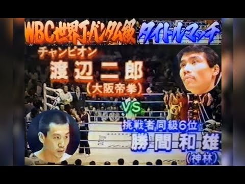 対する勝間勝男は、1980年のプロデビュー。渡辺が世界初挑戦をした頃は、まだ6回戦に昇格したばかりであった。渡辺の世界タイトル防衛戦、グスタボ・バラス戦とパヤオ1戦目では、セミファイナルを務めている。