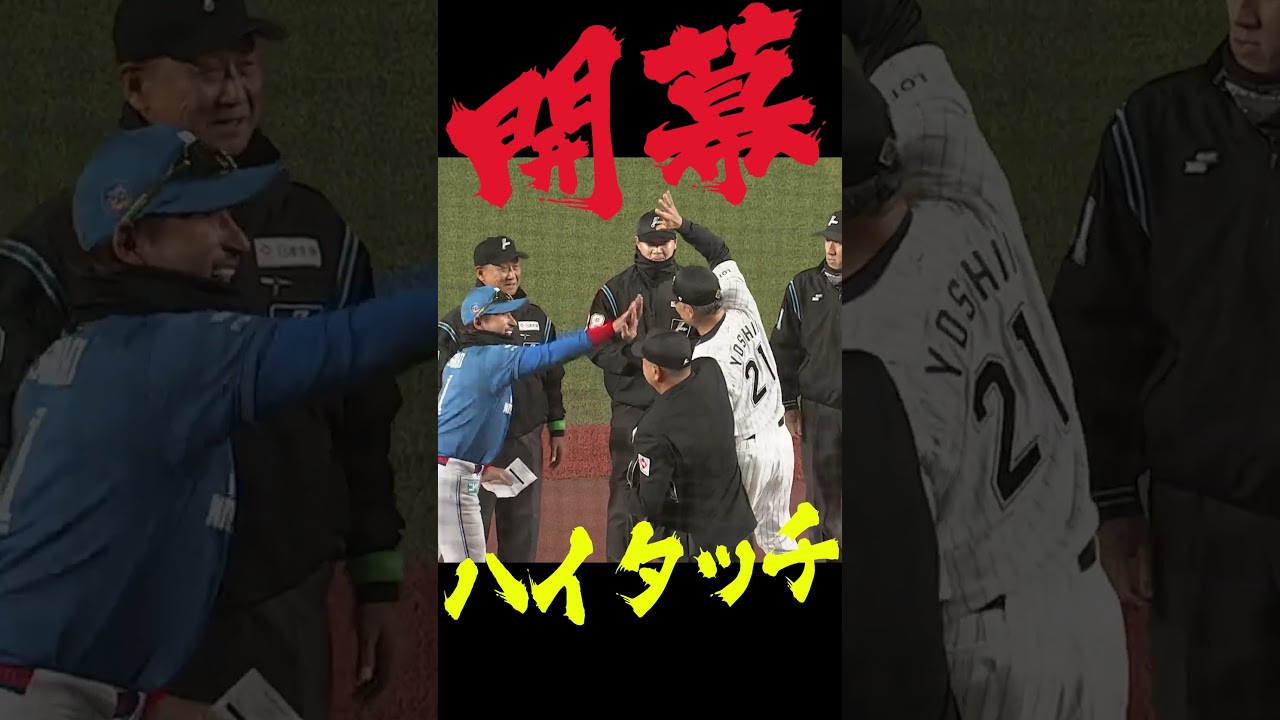 昨日新庄監督はハイタッチしてくださいよ というリクエストをしましたがどう でしょうしましたねあもう審判の皆さんも 巻き込んでのこのハイタッチまこのお客様 の拍手を感じた新庄監督がいろんなオープ
