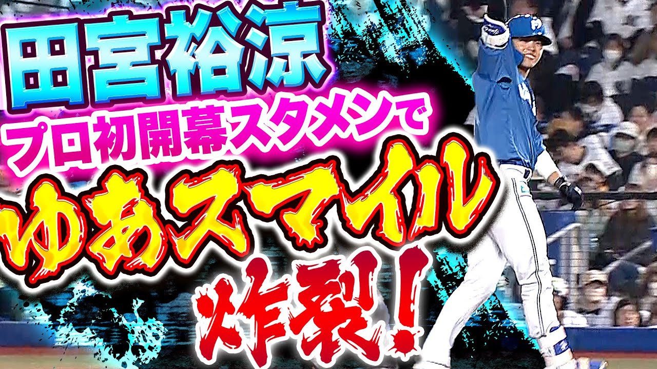 初の開幕スタメンを勝ち取った北海道日本ハムの田宮裕涼。3回表の初打席でうまく打球をセンターへ運ぶと、これがタイムリーとなって先制点を呼び込んだ!!