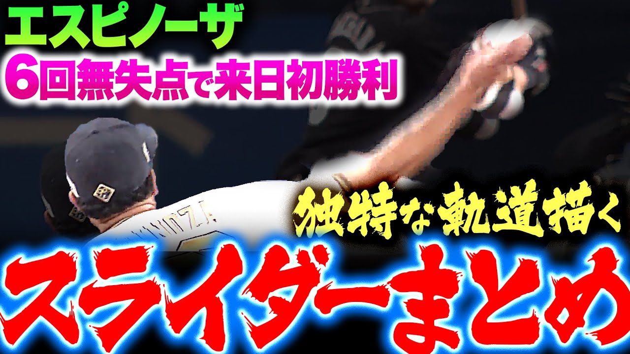 相手打者が驚いた表情を見せた独特軌道のスライダー。6回無失点で来日初勝利を挙げたオリックス・エスピノーザのスライダーまとめ。ふわりと浮いてタイミングを狂わせながら沈んでいくような軌道。これはなかなか打ちづらそうだ。