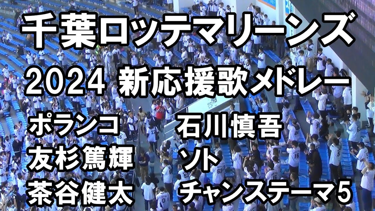 #千葉ロッテマリーンズ #応援歌メドレー #応援歌 #ソト #石川慎吾 #友杉篤輝 #茶谷健太 2024年3月16日 千葉ロッテマリーンズの2024新応援歌が発表されました。 0:01 ポランコ 0:42 友杉篤輝 1:23 茶谷健太 2:03 石川慎吾 2:42 ソト 3:26 チャンステーマ5 ポランコ、チャンステーマ5に前奏がつきました。 友杉、茶谷、ソトに新応援歌ができました。 石川慎吾 応援歌が新しくなりました。 #プロ野球Yomiuri Giantsマリーンズマリーンズ応援歌ロッテロッテ応援歌千葉ロッテ千葉ロッテマリーンズ応援歌石川慎吾読売ジャイアンツ野球 NPBHUB.COM | The Fanbase of Nippon Baseball & Nippon Professional Baseball