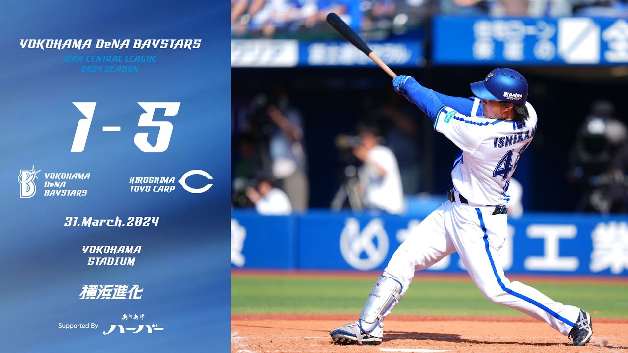 [音楽] さあそれでは今日のゲームはハイライトで 振り返り ましょう1回の裏のベースターズの攻撃 ですカープ先発のアは2アウト1塁3塁で 宮崎ストレートをしっかりと打ち返しまし て先生のタイムリー2ベース1点を先行し ましたこの後2アウト満塁まで行ったん ですが追加点は取れなかったベーター2回 の表ベース先発大きです先頭バッターに フォアボールを与えてノーアウト2塁3塁 このピンチ田村のファーストゴロこの1点 はもうしょうがない1点ですがただえこれ でランナーまだ3塁にていうような形でえ ちょっと守りのミスも絡んでピンチが続い たんですがそこはしぎました3回の表1 アウト走者なしで田中介ライト スタンドまストレートこれはちょっとま うんコントロールミス真ん中にしまました 大き4回の表1アウトランナー1塁です 田村空振り三振ここはショート石神がいい タッチ プレー盗塁アウトにしまし [拍手] たそして4回の裏はワンアウト操車なしで 梶原のセカンドライナーまちょっと詰まっ た打球でしたがセカンド口のファイン プレータープもアドアを盛り立てます5回 の表2アウト走者なし [拍手] 打球石ダイレクト [拍手] キャッチ石上のファインプレー5回の裏2 アウト1塁で牧の 打球ショート小園がファインプレーという こと でともいいプレーも見えていました6回の 裏2アウト1塁2塁カープは2人目の ピッチャーの 松田がに変わってピンチターでされました プロ 出場にったんですがファーストファール フライに倒れまし たそして7回はウィックが登板して1 アウト1 塁バットをへし寄ってこれオースティンが よくミッドに当ててそしてセカンドマが カバーウィックもいいベースカバー早く 一塁ベースカバーに入りましてこれはま ファインプレー3人共同のファインプレー です 代打松山がセンターフライ倒れまして ウィック来日初登板点でマウントを置いて い ます8階の表は上谷がマウンドに上がり