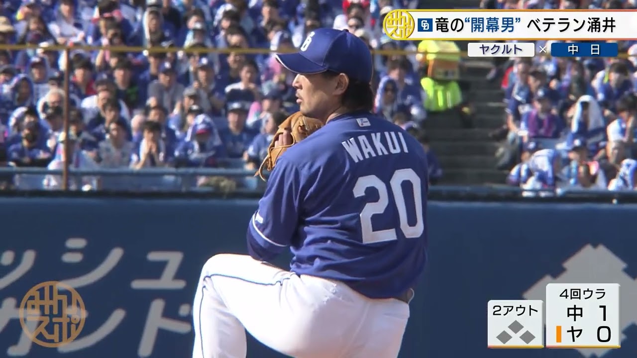 20年目のシーズン開幕へ、「いつまで経っても緊張する」と話す、中日先発の涌井秀章(37)の初回。切れ味抜群のスライダーに、衰え知らずのストレートで打たせて取るピッチングでヤクルト打線を3人で抑える。