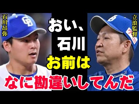大きな期待を寄せていまし た2軍スタートの 真相こうした周囲の期待とは裏腹に キャンプは2軍スタートだった石川選手 特に怪我をしているわけではありませんが 波監督は石川選手のの未を改めて強調して い ます一体なぜ2軍スタートで昇格時期未定 としたのでしょう か立波監督はこの件について次のように 答えてい ますもっともっとしっかり練習してから 考えたいと思います実践が始まってから あげるあげないというかまずはしっかり 走れるようになることそういったことを 含めて今の いつあげるとかは決めていない ですサムイジャパンの教化試合の最終 メンバーとしても選ばれている石川選手 ですがだからと言ってドラゴンズでの立ち 位置を変えるつもりはないと語り ます立波監督がここまで厳しくするのには 理由がありますそれは足を動かせたいと いうもの です昨年は規定打席に到達した石川選手 シーズンを通して下半身のコンディション 不良を抱える中条件の443打席を21 打席上回る464打席を立たせ打率は2割 4部2輪13本類だとなってい ますこれだけ見ればまずまずの成績でした が予番を任される中で1つの記録が課題と して浮かび上がりました それがチャンスでどれだけ打つことができ たかを示す得点権打率が極めて低かったと いう 事実石川選手の得点検打率は1割8部4厘 で規定打席に到達した12球団のバッター の中でワーストでし たなぜチャンスでこれだけ打てなかったの か石川選手は打席で気持ちがしていたと 振り返りヒットを打ってランナーを返し たいという意識が強くなるあまり思い切っ たスイングができなくなりストレートに 差し込まれる場面が多かったというの です石川選手はうちに行っちゃうというか 得点権だからなんとかしようという気持ち が強すぎて全部合わせるような形になって しまっていましたまっすぐをファウルにし てしまうことが多かったのでそこを 思い切って三振を怖がらずにストレートを 仕留められるようになればもっと得点検 打率は上がってくると思いますと話してい ます首脳saidはこのような明確な弱点 を把握していましたがそれでも使い続け 未来への投資と腹をくりまし