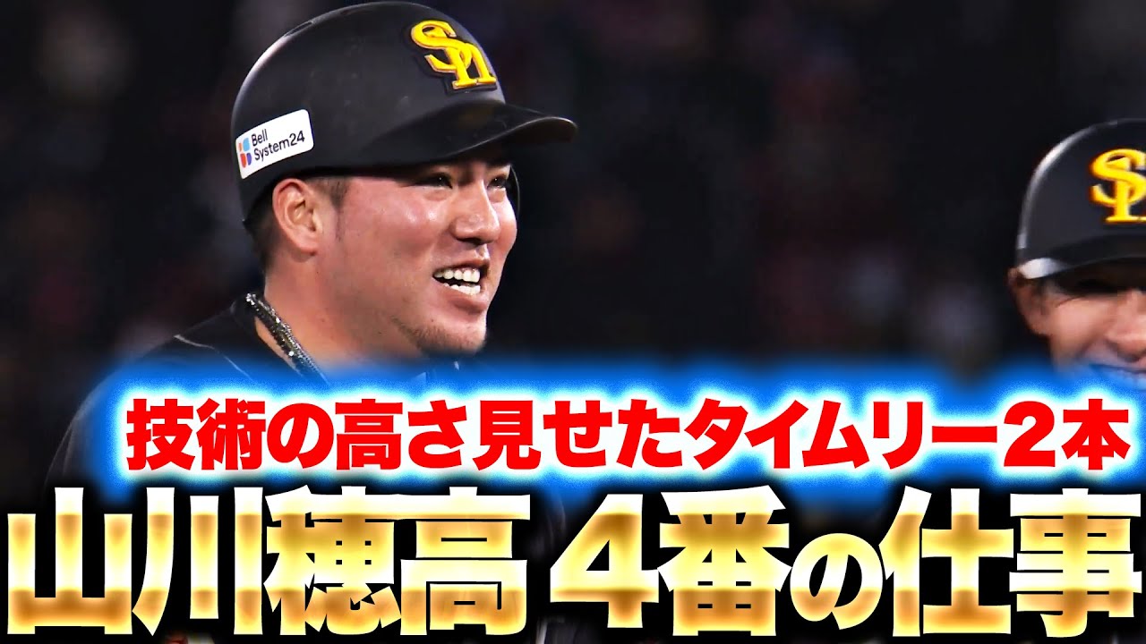 福岡ソフトバンク・山川穂高が4番の仕事をきっちりとこなす!!! 3回には1死3塁のチャンスでレフト線際へのタイムリー2ベースヒット、さらに6回にもレフトへのタイムリー2ベース!! 技術の高さを見せつけた”マルチ2ベースヒット”となった!!