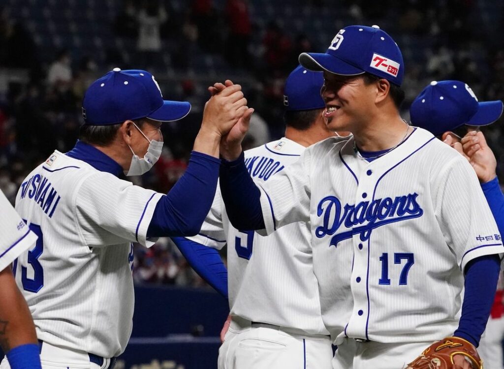 地元3連勝! 完封勝利! 試合後、立浪監督とガッチリハイタッチする柳投手 ファンの皆さま、いつもご声援ありがとうございます。 #柳裕也 #中日ドラゴンズ Chunichi DragonsChunichi Dragons Official MediaNPB Central LeagueOfficial Media中日ドラゴンズ柳裕也 NPBHUB.COM | The Fanbase of Nippon Baseball & Nippon Professional Baseball