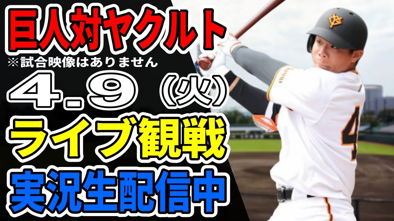 【巨人ライブ】4/9 巨人 対 ヤクルトスワローズをみんなで応援するライブ!巨人戦を生配信中!! #読売ジャイアンツ #巨人ライブ #ヤクルトライブ