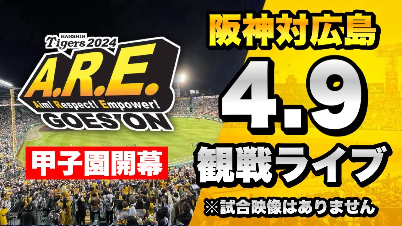 4/9 阪神タイガース 対 広島東洋カープのセ・リーグ公式戦を一緒に観戦するライブ配信です、本配信に試合のLIVE中継映像はございませんので予めご了承ください。