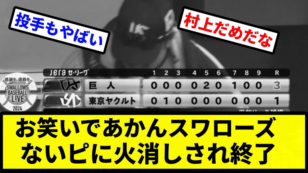 【あかんすよ球団】お笑いであかんスワローズ ないピに火消しされ終了【プロ野球反応集】【2chスレ】【1分動画】【5chスレ】