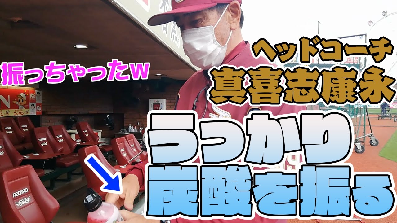 練習中にお気に入りの炭酸水を飲んでいた真喜志ヘッドコーチは、味変にチャレンジ。