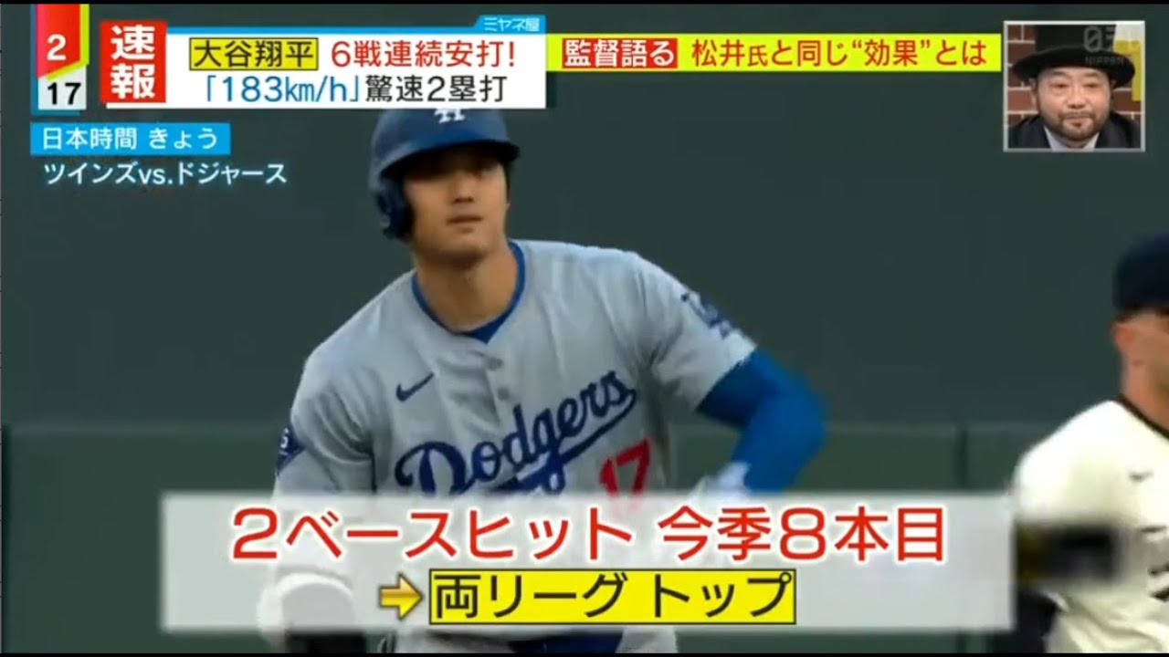 4月10日 プロ野球ニュース – 大谷翔平が好調維持の弾丸二塁打 アウトマン&スミス3ラン、グラスノー快投 ドジャース貯金6, 「183.4キロ」の強烈二塁打はクリケット効果か